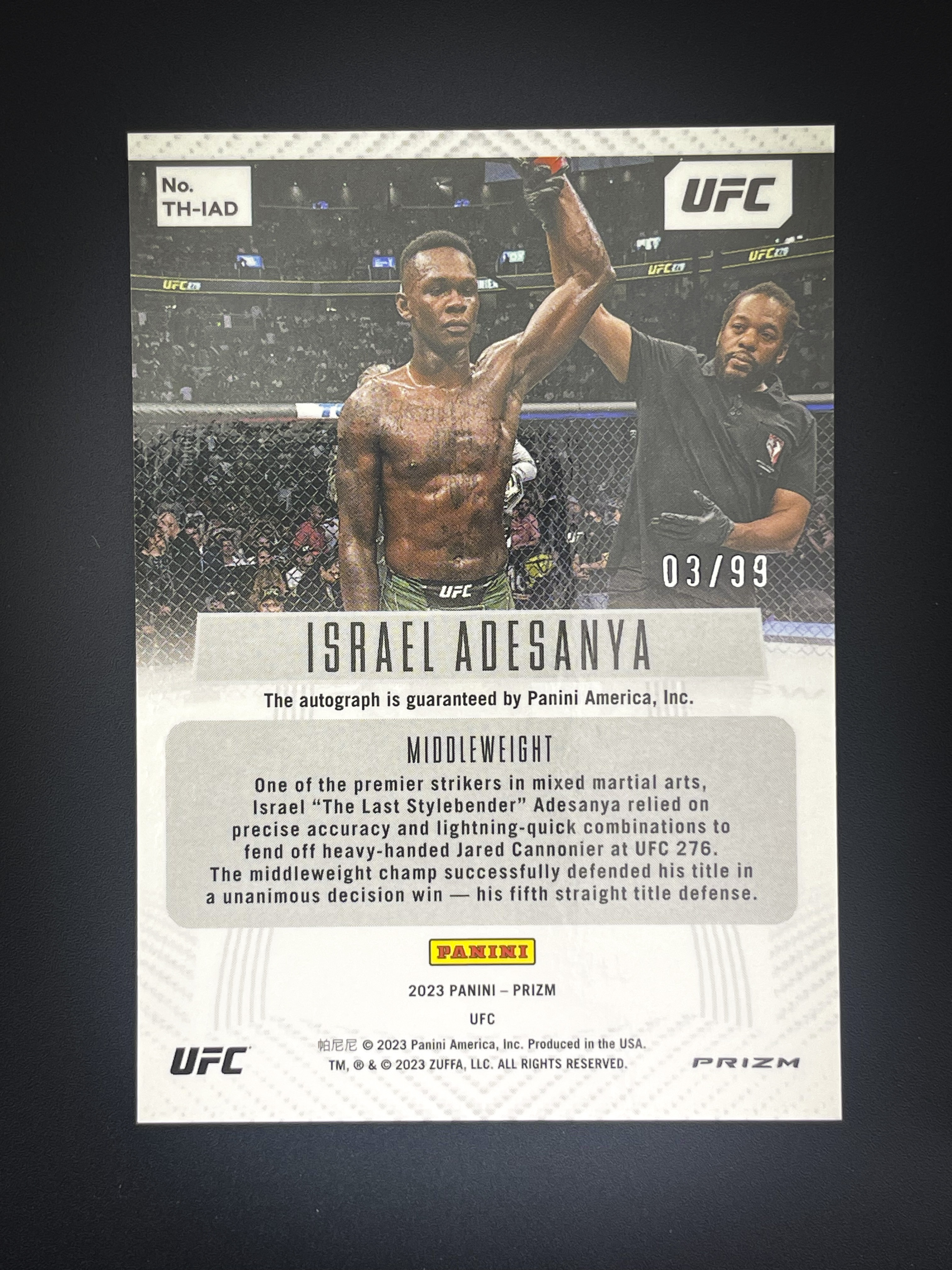 2023 Panini Prizm Israel Adesanya UFC 伊斯瑞尔 阿迪萨亚 黑龙 元年 闪回 签字 红折 03/99编 HDY021【马克代卖】