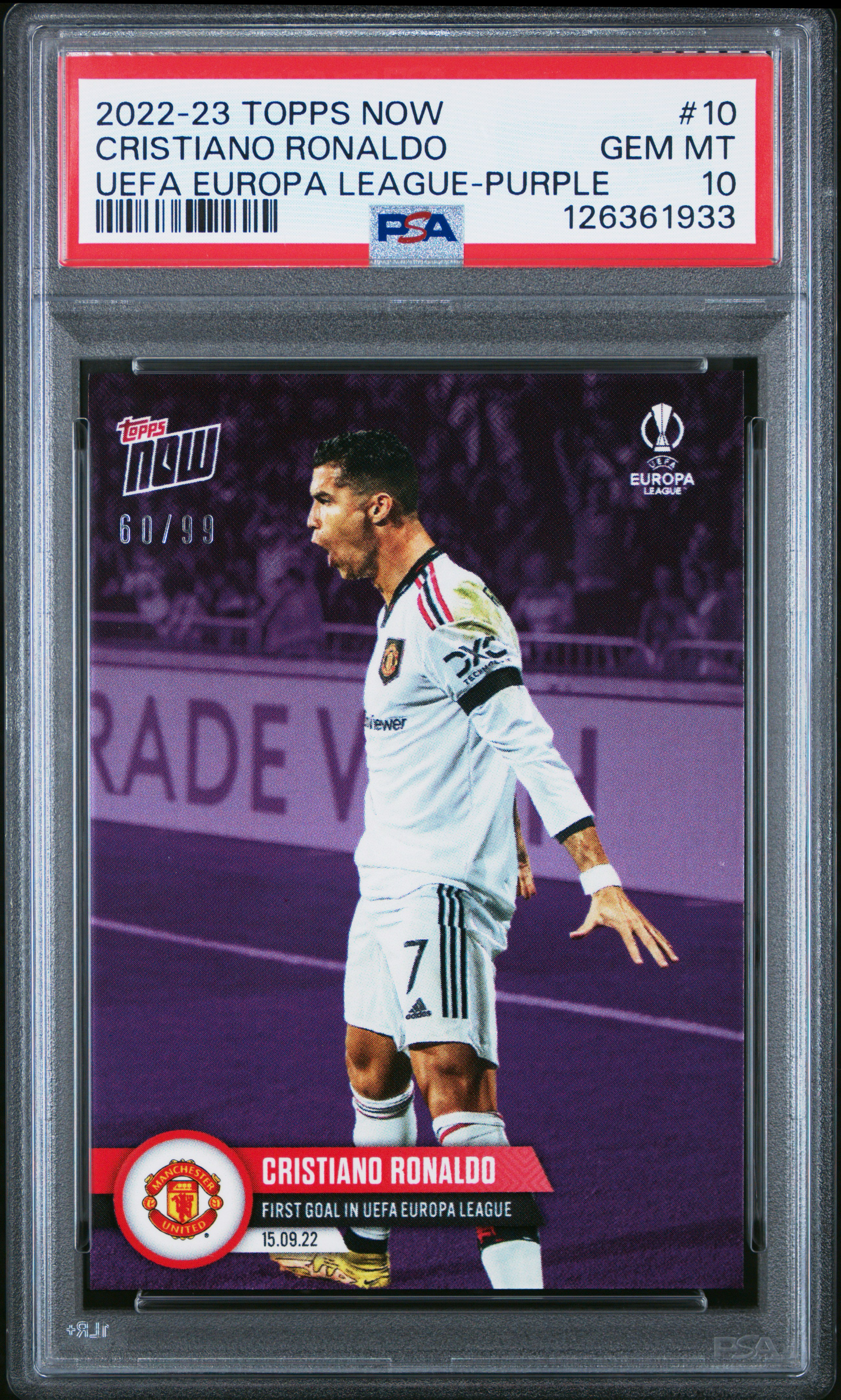 2022-23 Topps topps now Cristiano Ronaldo 罗纳尔多 C罗 psa10 60/99编 紫平行 Siu 超帅庆祝选图 绝版皮肤 曼联 皇马 尤文 葡萄牙 梅西好友