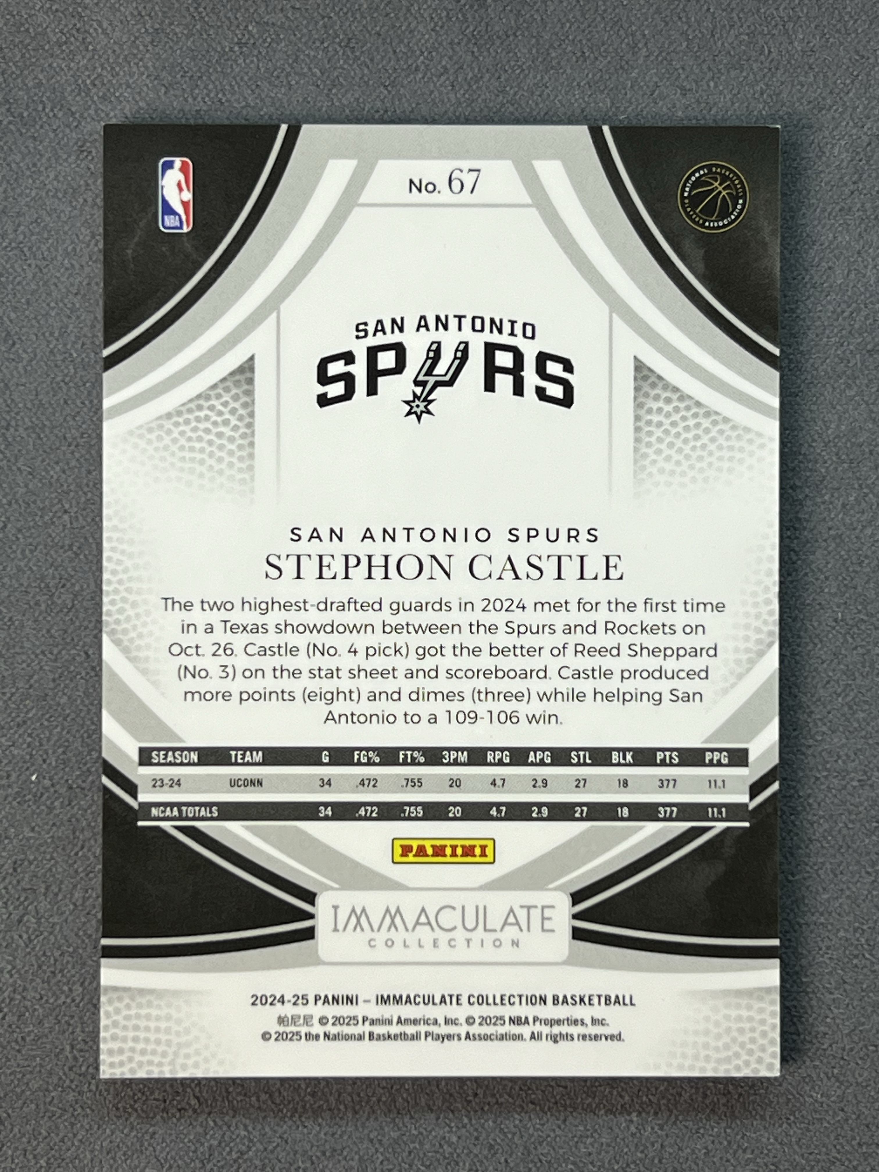 2024-25 Panini Immaculate Stephon Castle RC 斯蒂芬 卡斯尔 IMM 新秀 99编 厚卡 马刺 收藏投资凑套必备 花