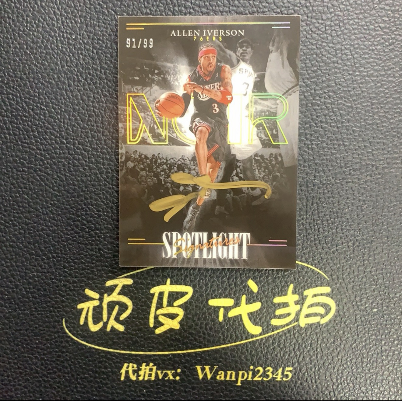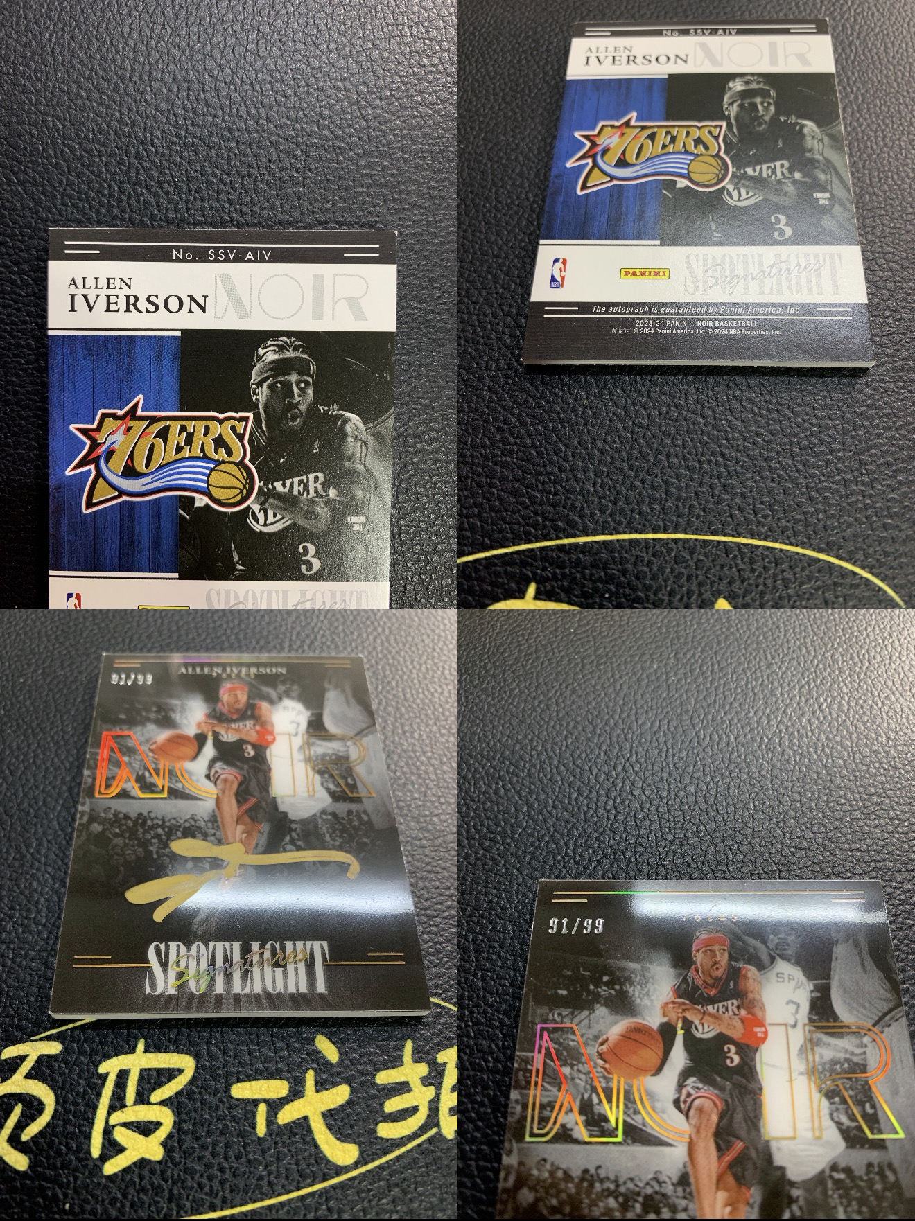 2023-24 Panini Noir Allen Iverson 【顽皮代拍仅收1%】阿伦 艾弗森 AI 答案 76人 诺尔 91/99编 签字 卡签 金笔签 聚光灯 镜面 瑕疵如图 #秃头