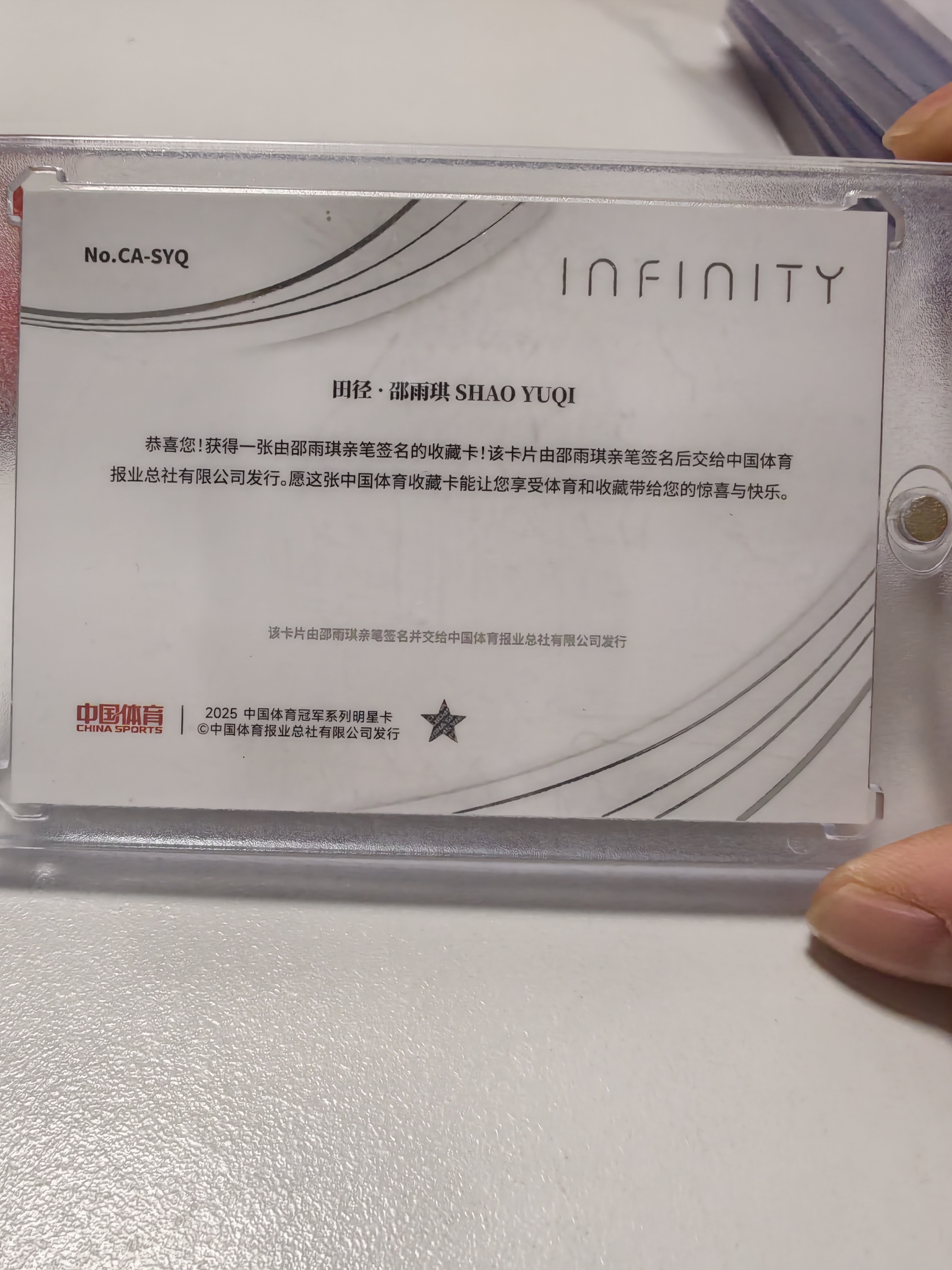 2025 奇卡 无限 Infinity 田径 邵雨琪 新秀 FS 49编 银折 银平行 折射 新星坐标 签字 卡品如图
