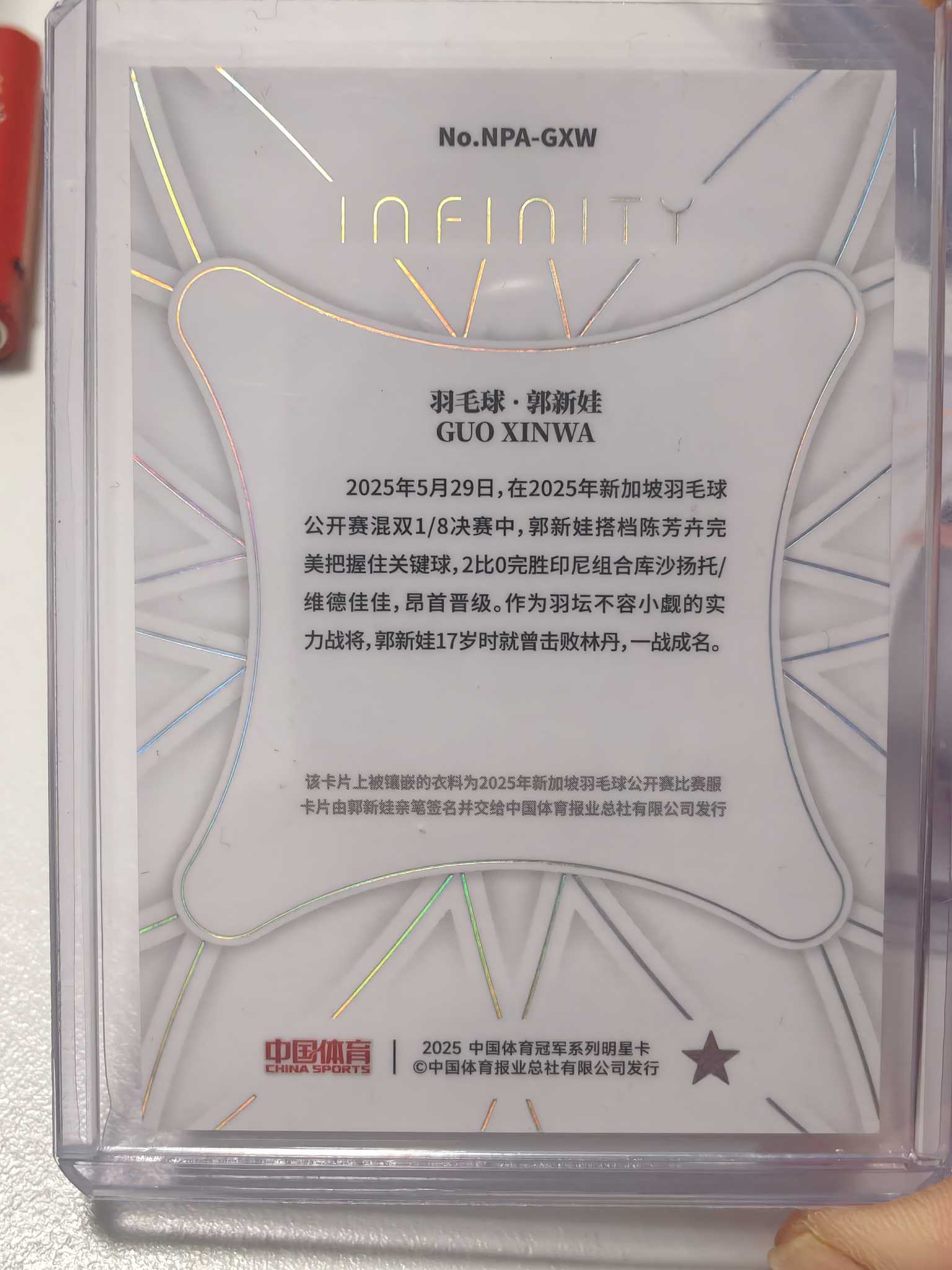 2025 奇卡 QICA 中国体育 无限 郭新娃 中体高端系列 4/25编 新星签字 RPA 卡签 比赛服物料 亲穿 切割 镭射银折 羽毛球