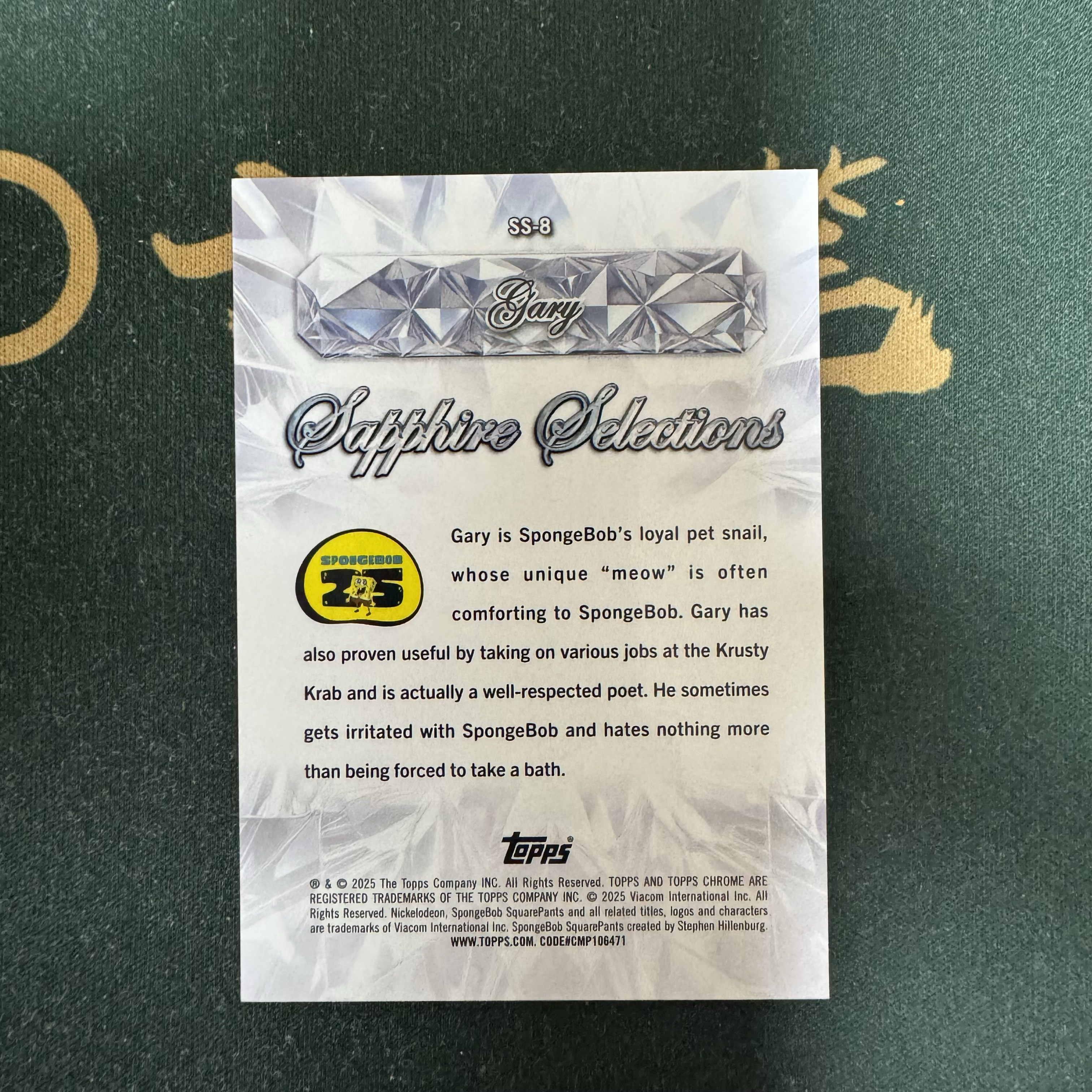 2025 Topps SpongeBob SquarePants 海绵宝宝 【十三笔】25周年 蓝宝石 Sapphire #SS-8 小蜗 Gary 碎冰折 大比例 卡品如图(YY)