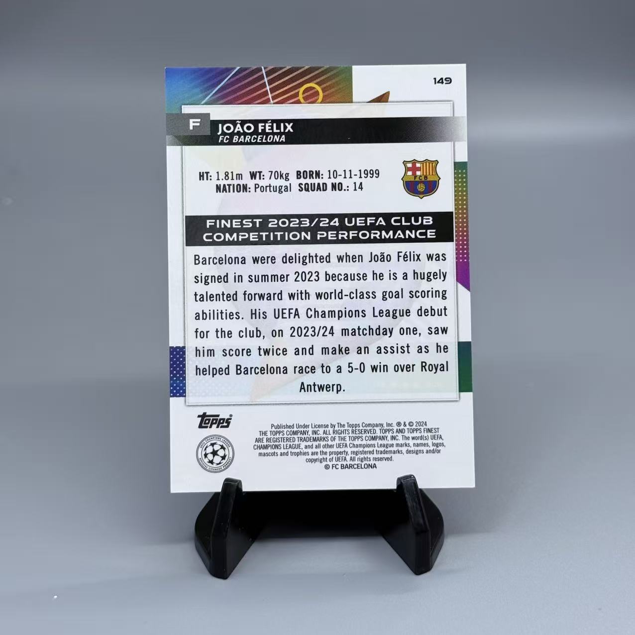 【UD代卖-Ksi哥】2023-24 Topps Finest 欧冠欧战 Joao Felix 菲利克斯 巴塞罗那 巴萨 101/199编 紫闪折 收藏必备 微瑕 卡品如图