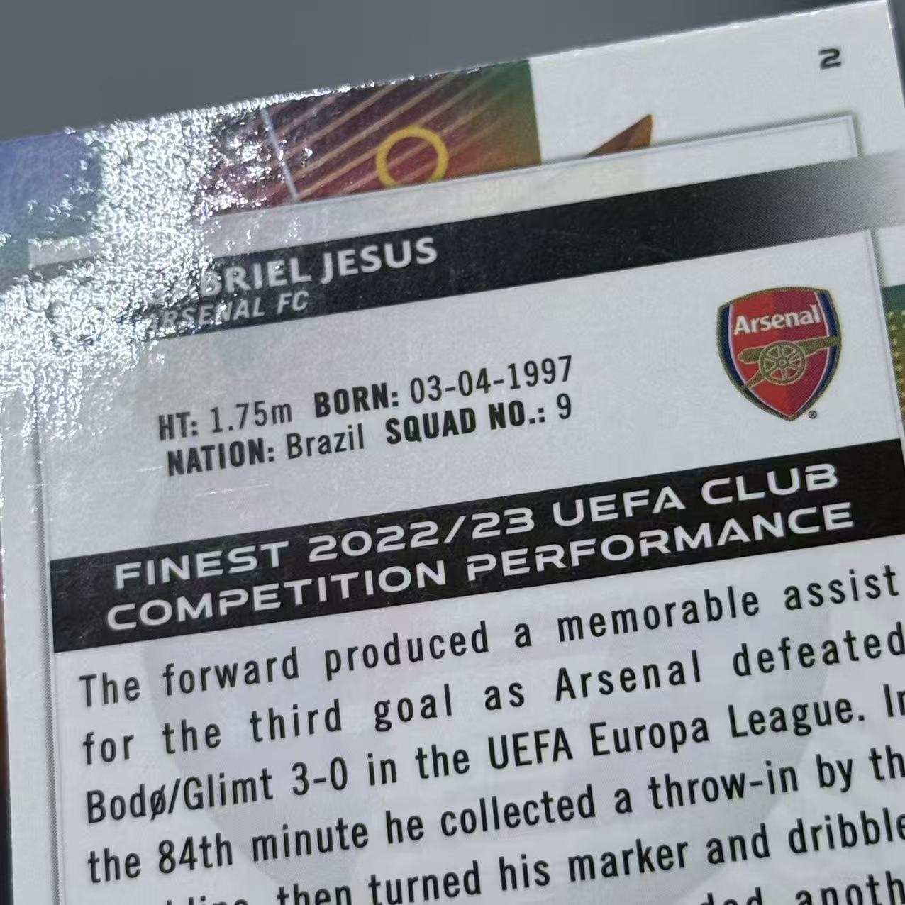 【UD代卖-Ksi哥】2023-24 Topps Finest 欧冠欧战 Gabriel Jesus 加布里埃尔 热苏斯 阿森纳 139/275编 天蓝折 收藏必备 微瑕 卡品如图