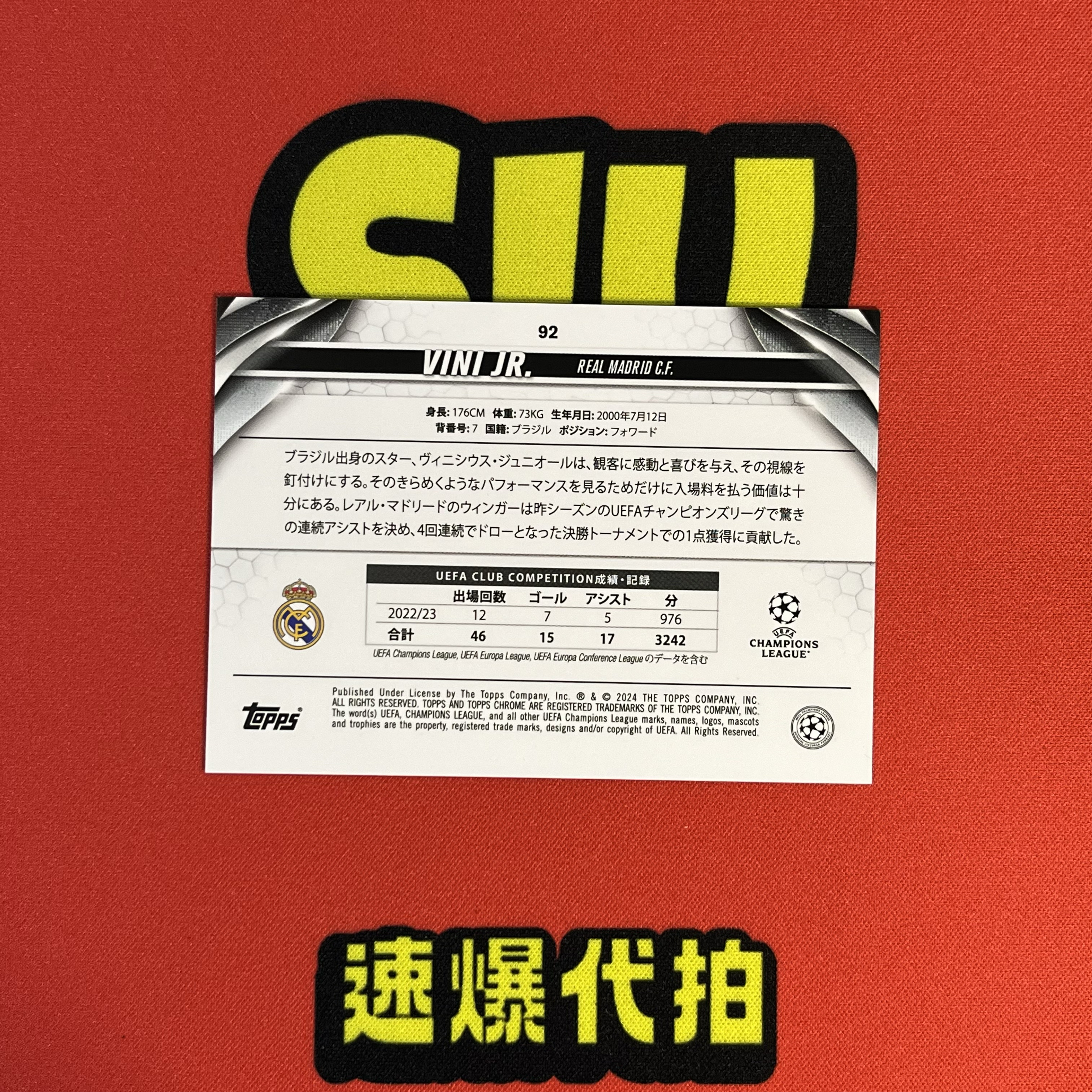 2023-24 Topps Chrome Vinicius Junior 西甲 皇马 维尼修斯 TC 07/50编 同背 金折 金mojo折 樱花 皇家马德里 欧冠 巴西 卡品如图 耗儿 【速爆代拍】