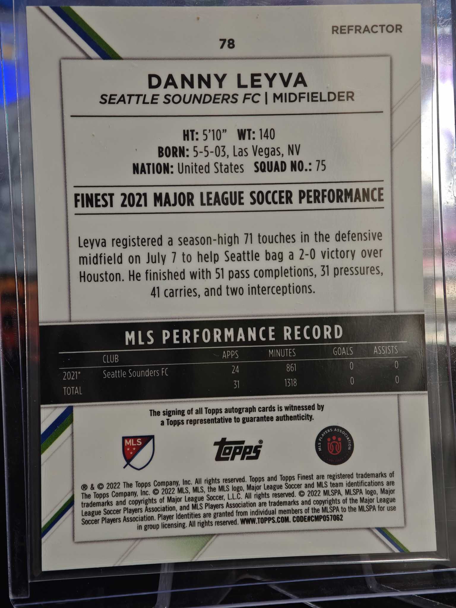 2022 Topps Finest Danny Leyva [隔天不合并] 🇺🇸 美职联 西雅图海湾人 丹尼·莱瓦 银折 签字 字迹不出框 Seattle Sounders FC 仔细阅读商品描述