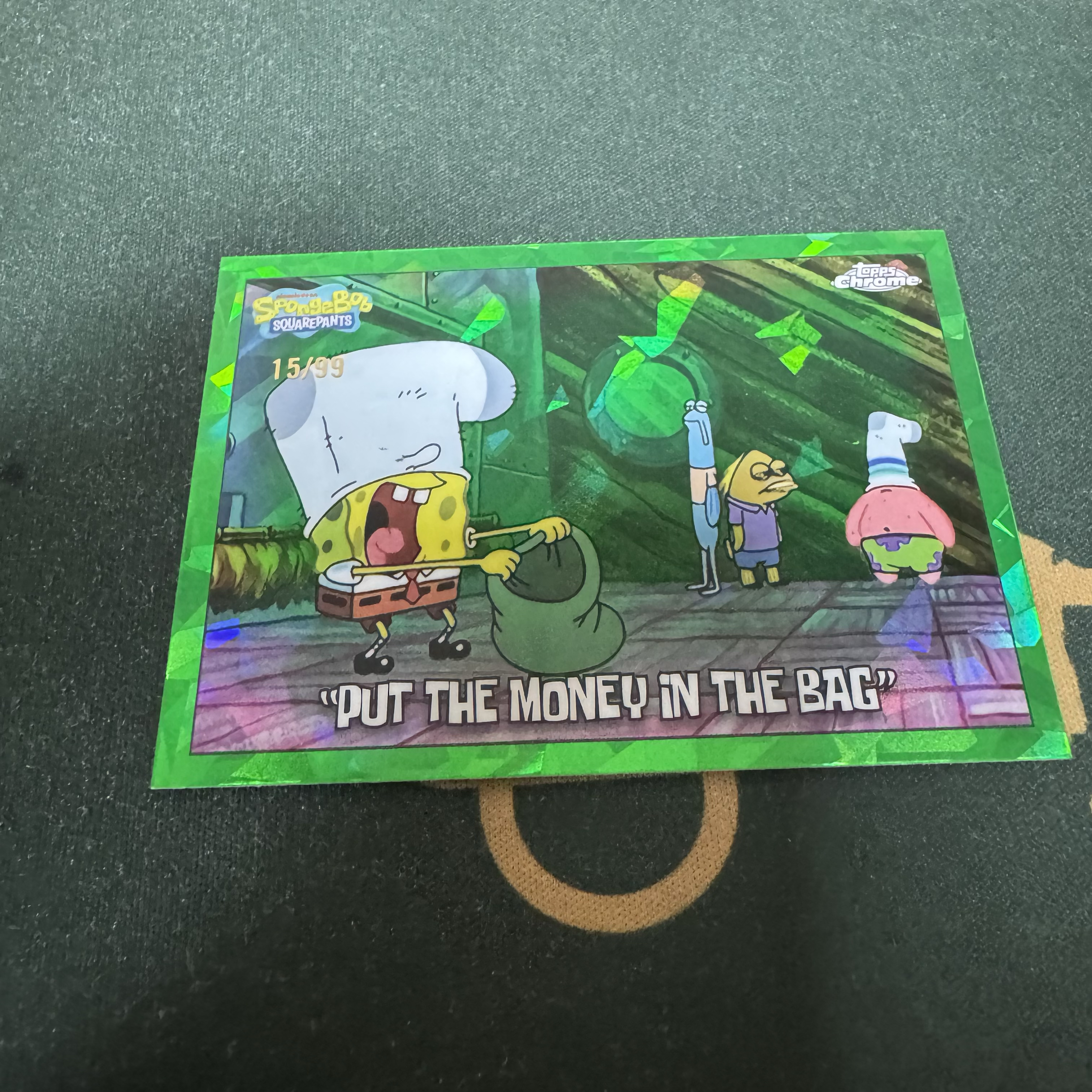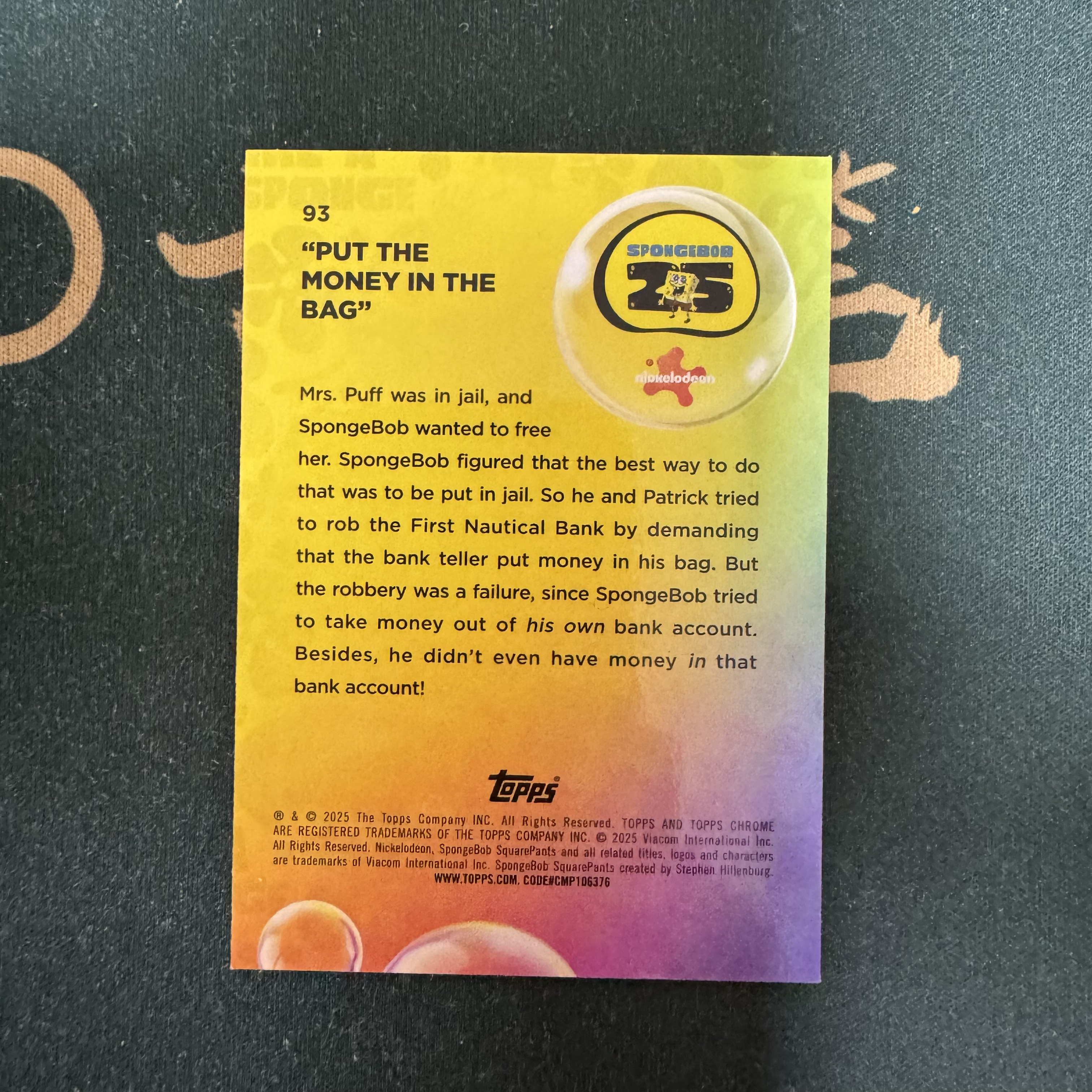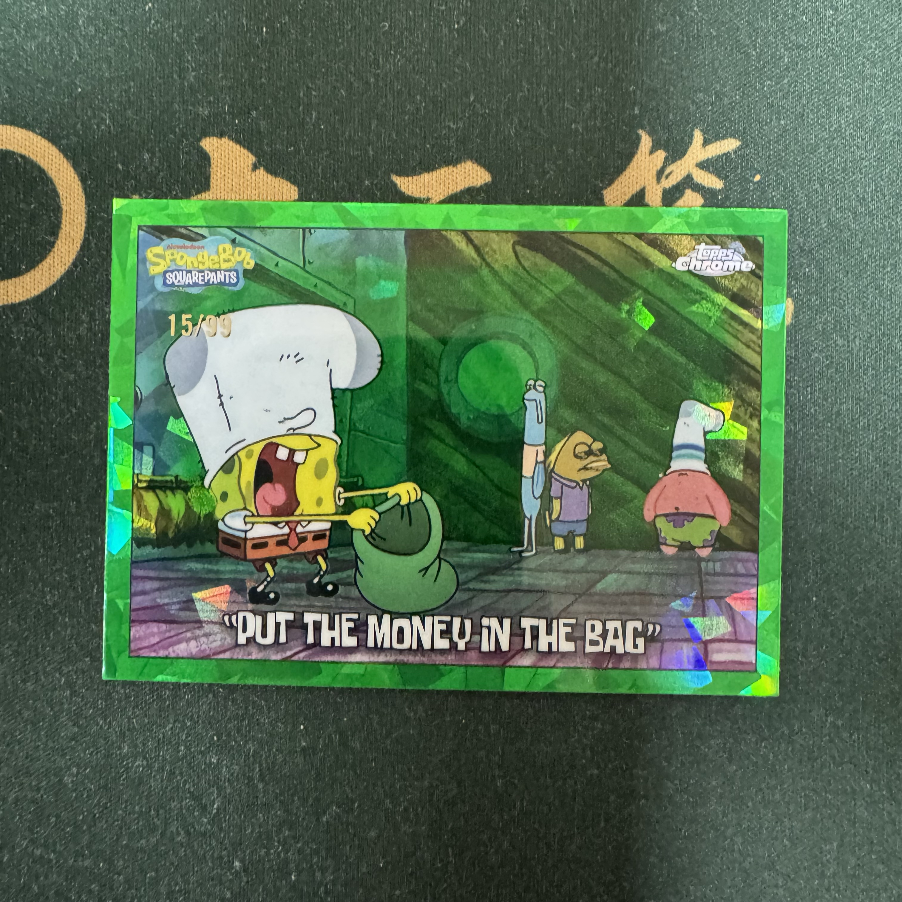 2025 Topps SpongeBob SquarePants 海绵宝宝 【十三笔】25周年蓝宝石 #93 派大星 海绵宝宝 99编 绿碎冰折 横版 卡品如图(YY)2