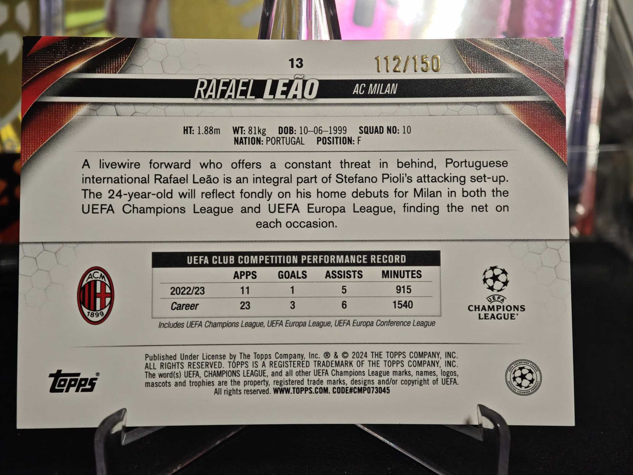 2023-24 Topps Chrome Rafael Leao [隔天不合并] AC米兰 112/150 莱奥 碧玉 祥云折 🇵🇹葡萄牙 C罗 队友 实卡拍摄 下拍前仔细阅读商品描述