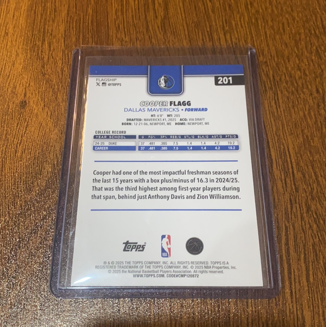 2025 Topps Flagship Cooper Flagg RC 独行侠 库珀 弗拉格 新秀 base 梓二 011 【咸鱼代拍】