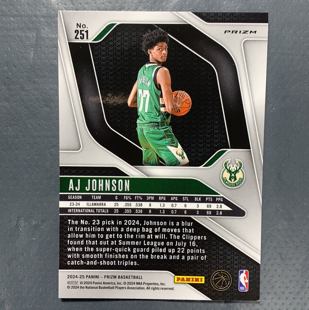 2024-25 Panini Prizm AJ Johnson RC Prizm AJ 约翰逊 RC 新秀 粉碎冰折 雄鹿