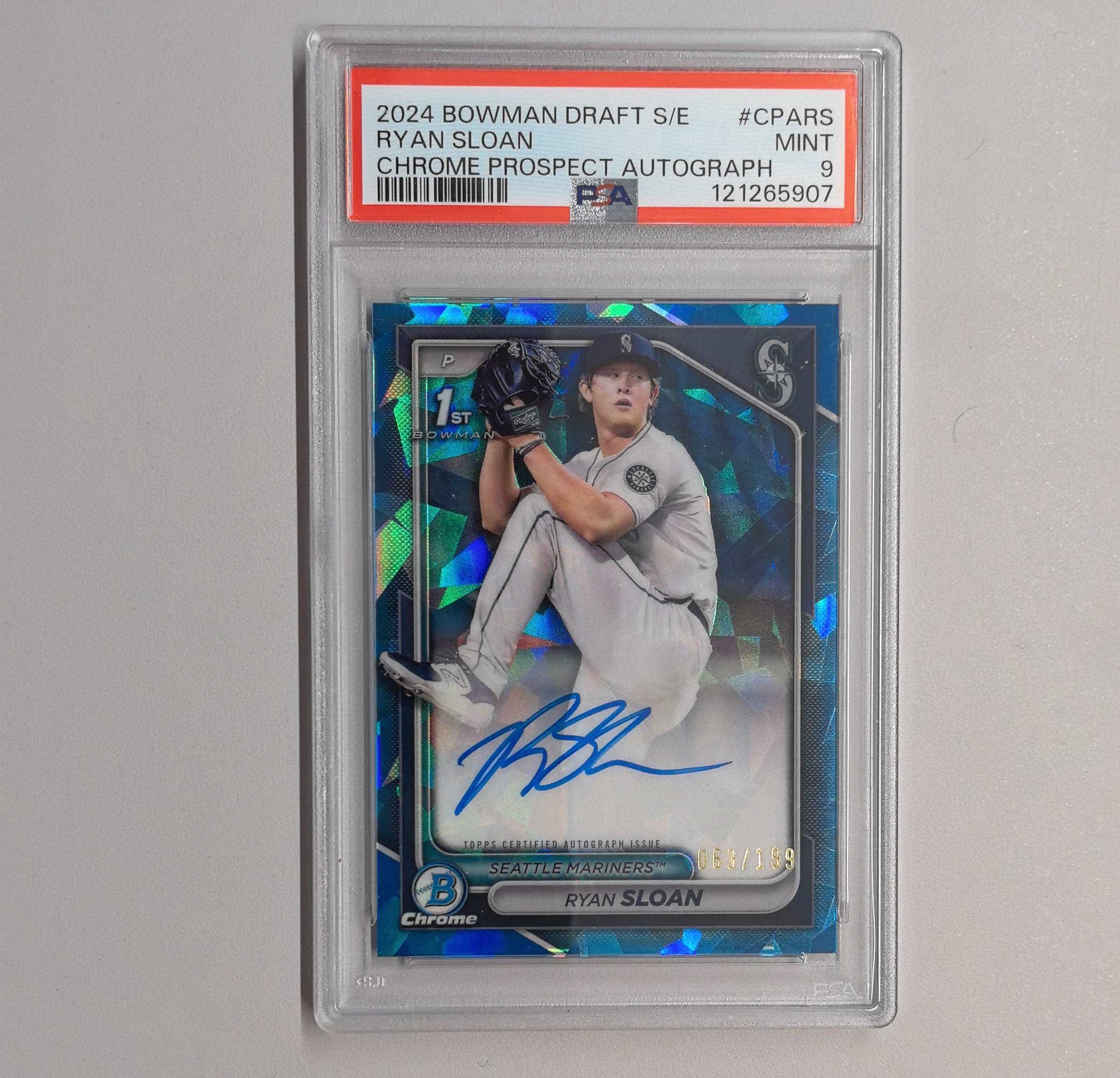2025 Topps 【锡安代卖】 累计照常 棒球mlb bowman 1st新秀签字卡签 199编蓝碎冰蓝宝石签字卡签 西雅图水手热门新秀大物 Ryan Sloan 百大新秀 psa9 卡品如图 牛