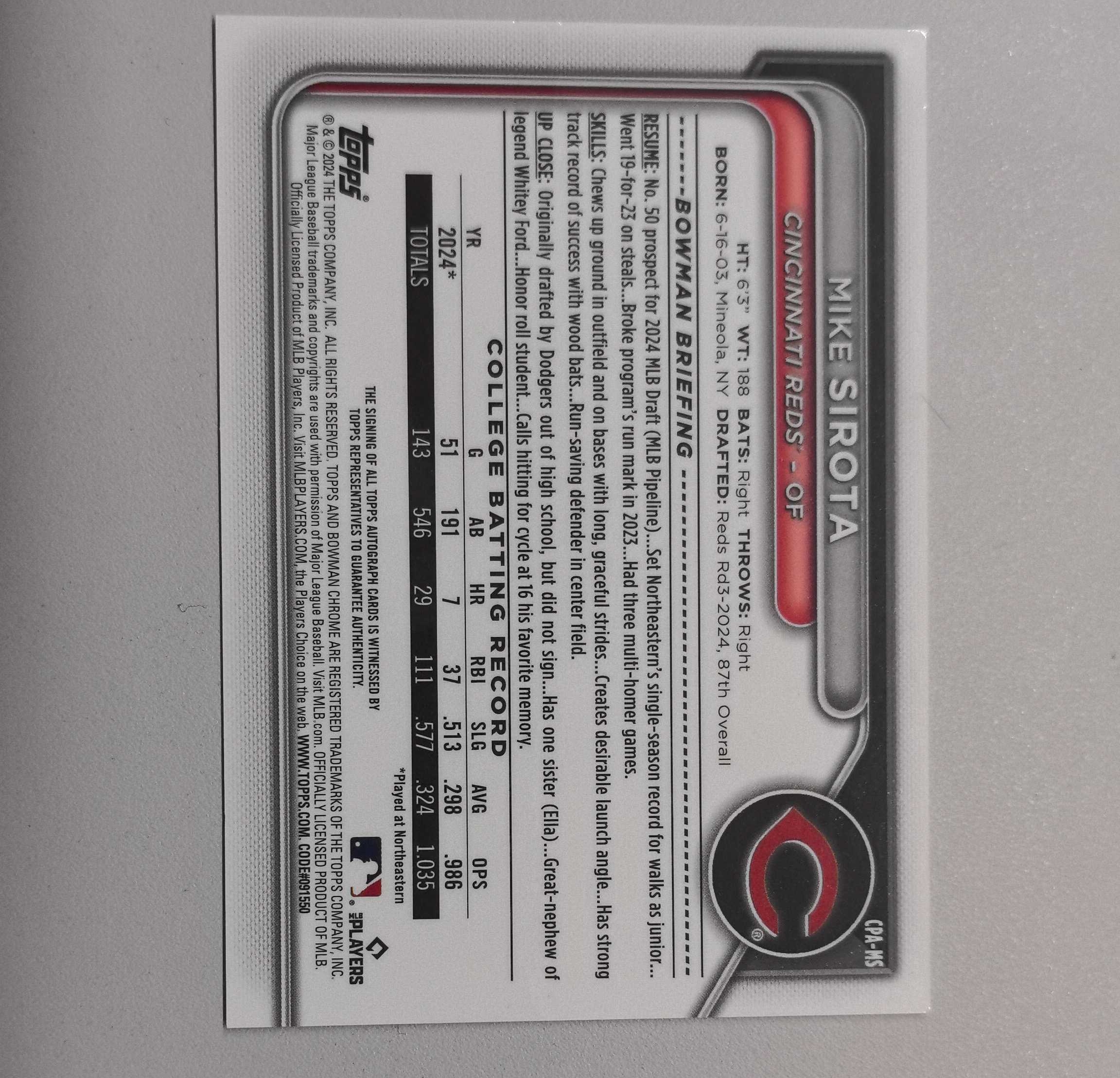 2025 Topps 【锡安代卖】 累计照常 棒球mlb bowman 1st新秀签字卡签 蓝宝石蓝碎冰折199编 洛杉矶道奇热门新秀大物 Mike Sirota 百大新秀 卡品如图 牛