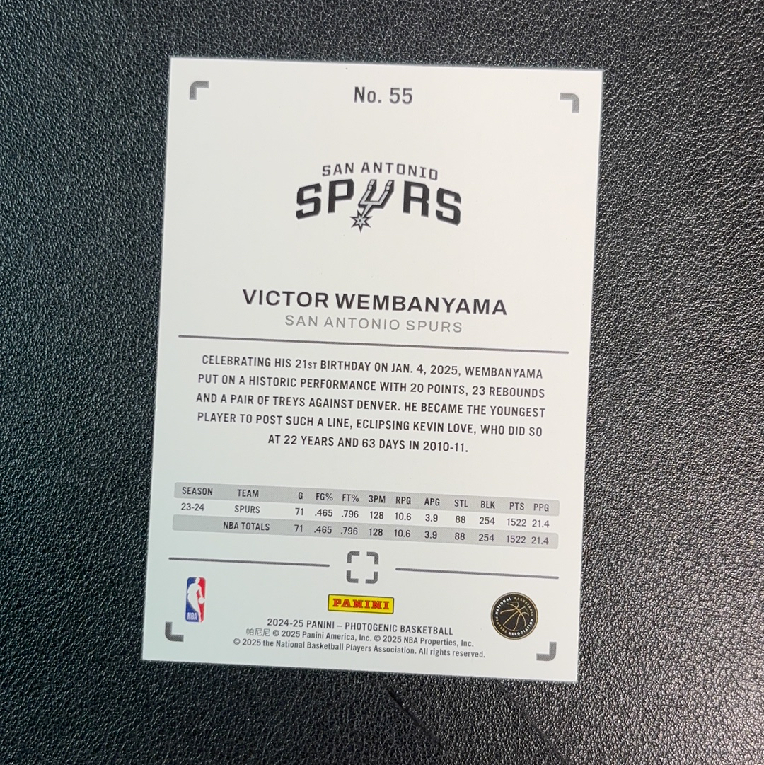 2024-25 Panini Photogenic Victor Wembanyama 鸡翅包饭代卖 维克托文班亚马 上镜 base 马刺 新秀次年 选图精美 SH125 E171117