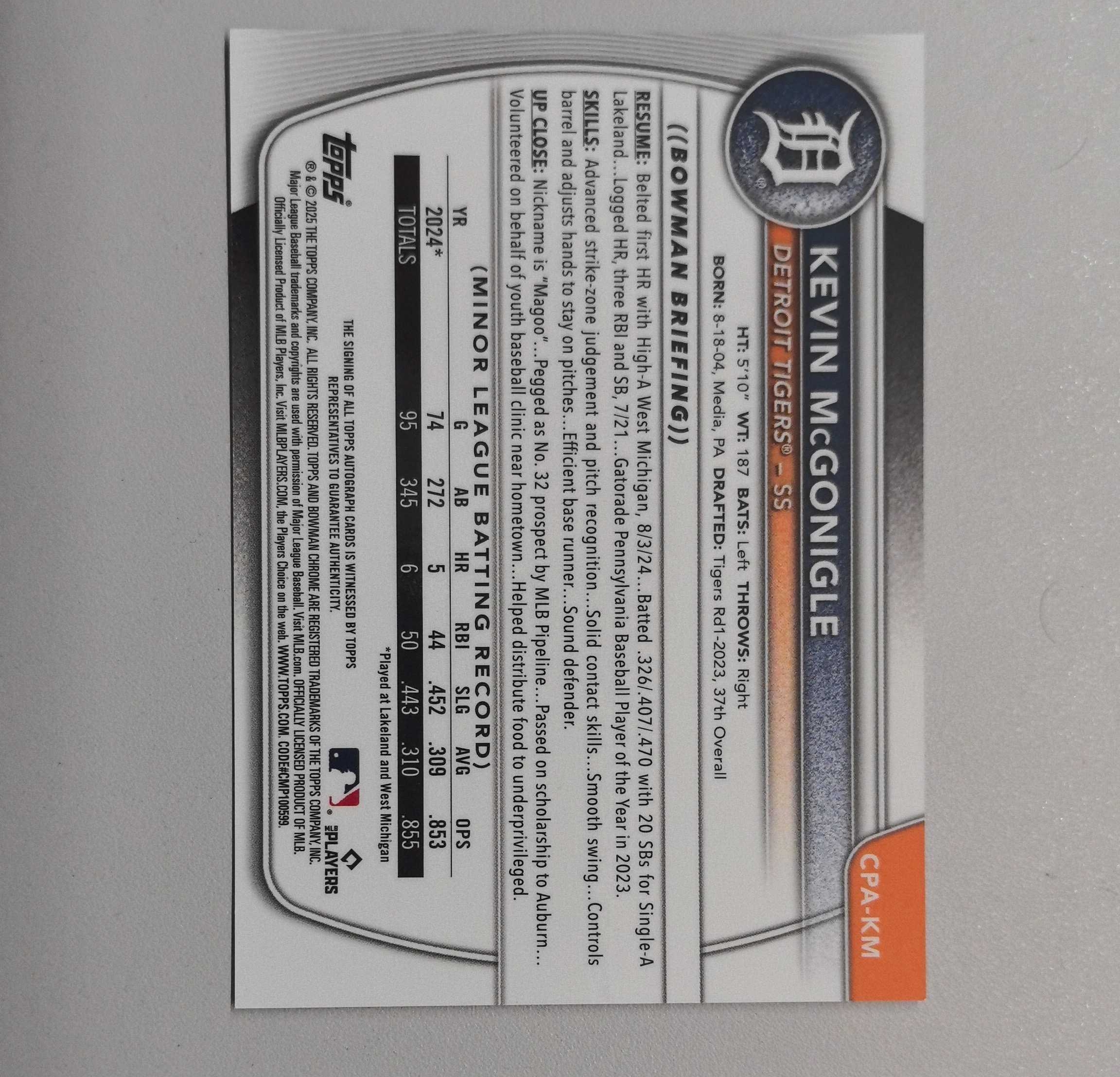 2025 Topps 【锡安代卖】 累计照常 棒球mlb bowman 1st新秀签字卡签 底特律老虎热门新秀大物 Kevin Mcgonigle 百大新秀第二名 卡品如图 牛