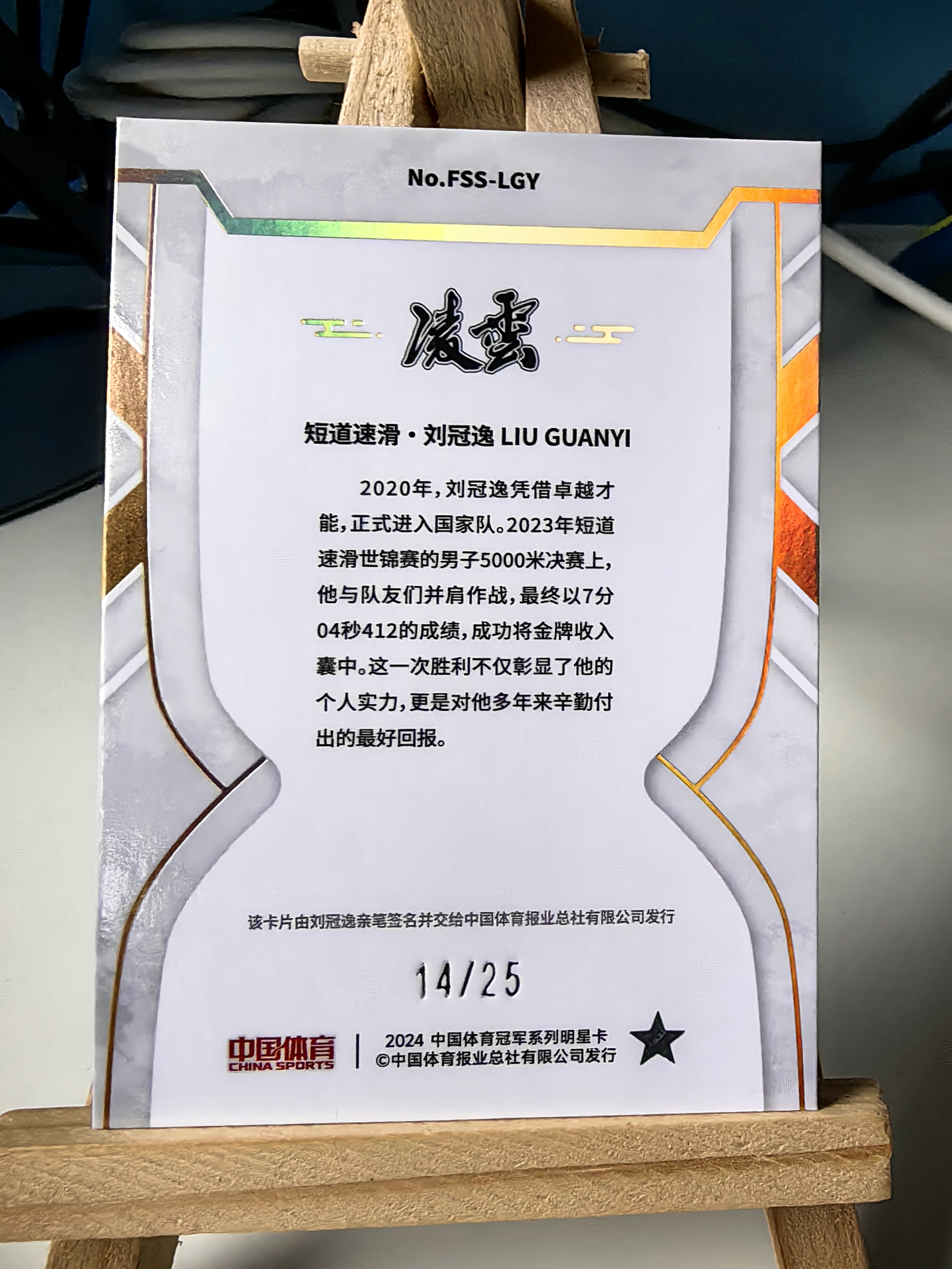 2024 奇卡 QICA 中国体育 凌云 刘冠逸 RC 短道速滑 帅哥 刘冠逸 25编 蓝碎冰折 签字 卡签 未来之星签 实卡精美 收藏必备