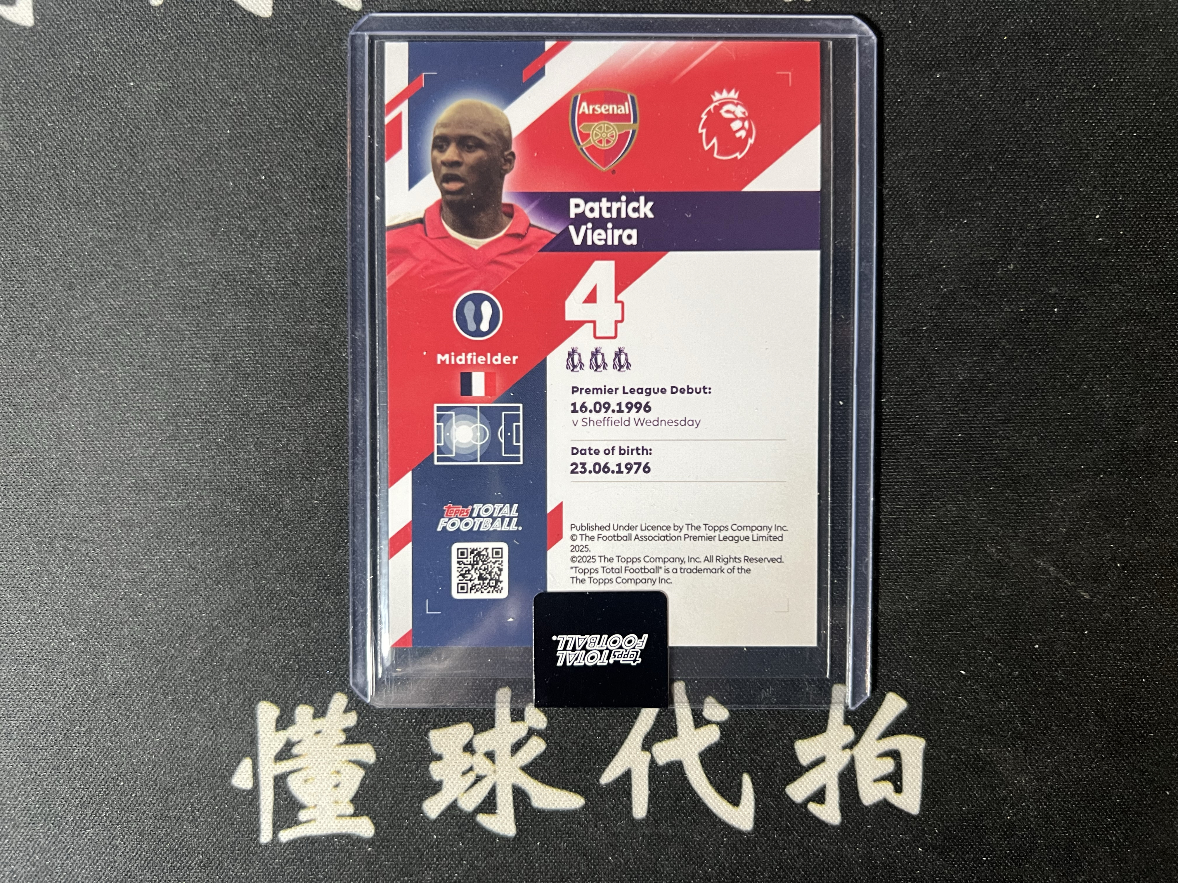【懂球代拍】2025-26 Topps Total Football TTF竞技场选图 99编原封夹 阿森纳 Patrick Vieira 维埃拉 不败赛季捧杯时刻选图 法国 DQ079Z 013