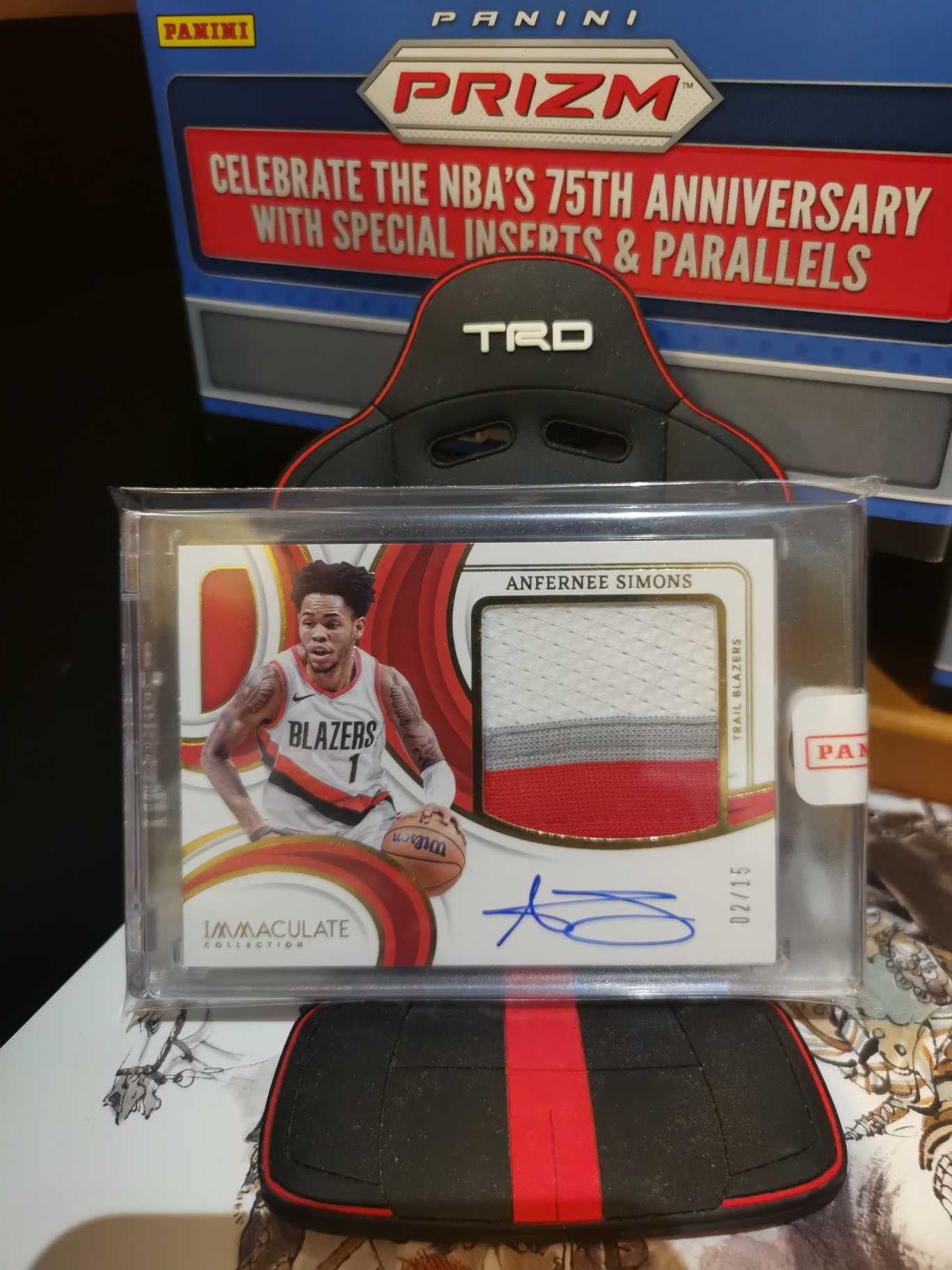 2023-24 Panini Immaculate Anfernee Simons 安芬尼西蒙斯 三色大球衣 签字 卡签 Premium Patch PP 金平行 开拓者 凯尔特人 02/15编 原封砖