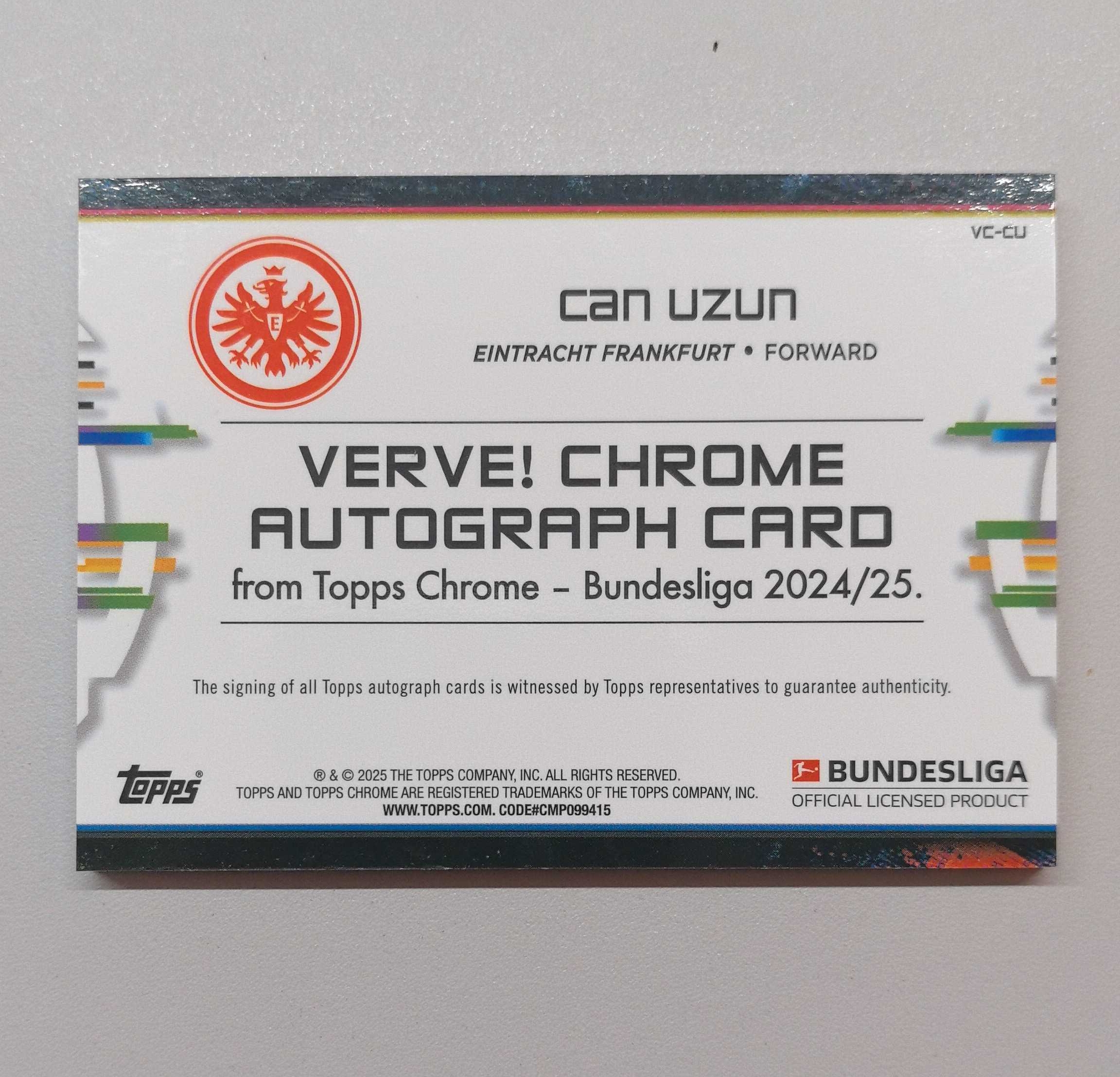 2025 Topps 【锡安代卖】 累计照常 德甲 topps chrome 大比例ssp沙盒签字 法兰克福超级新秀 詹乌尊 Can Uzun 卡品如图 澳洲