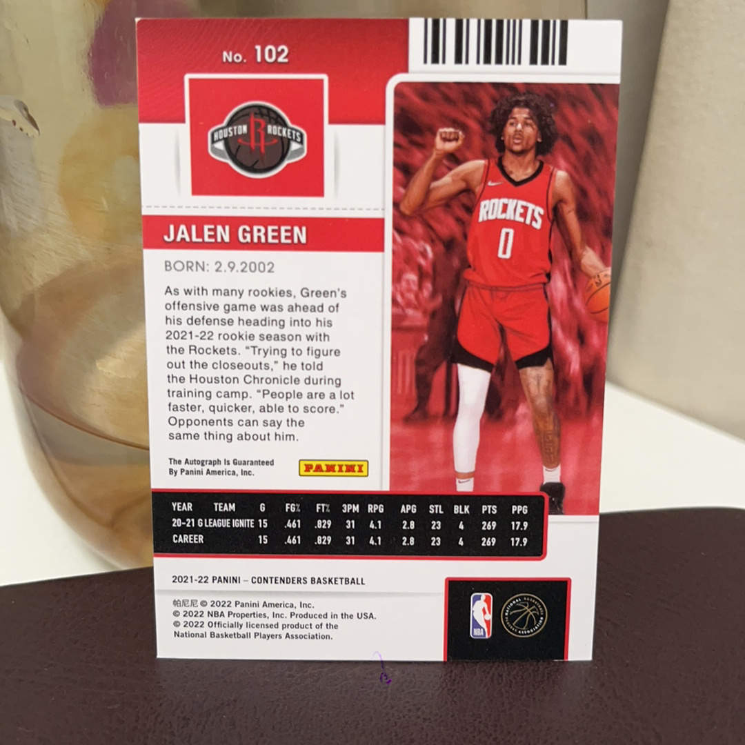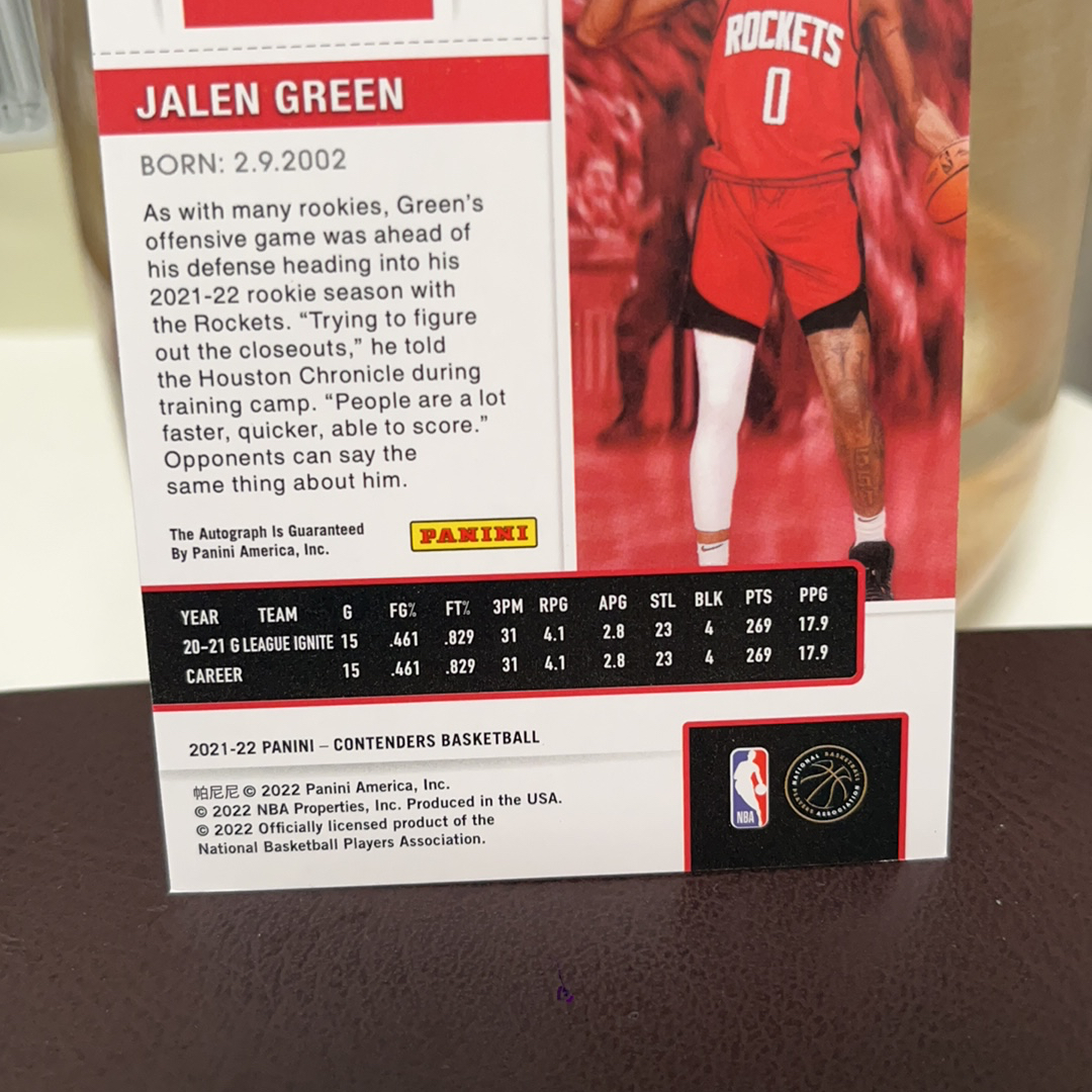 2021-22 Panini Contenders Jalen Green RC 火箭 杰伦 格林 球票 新秀 签字 卡签 卡品如图