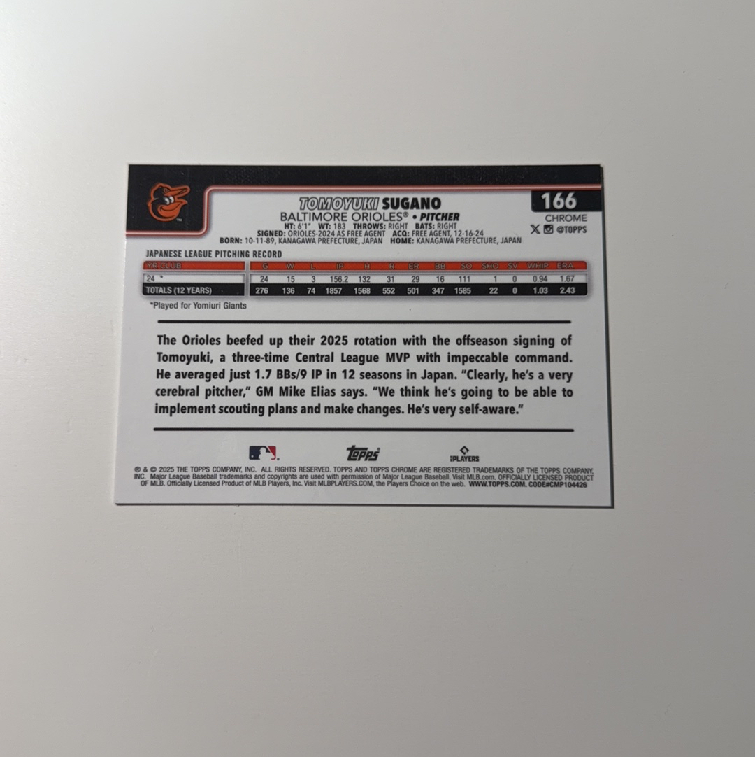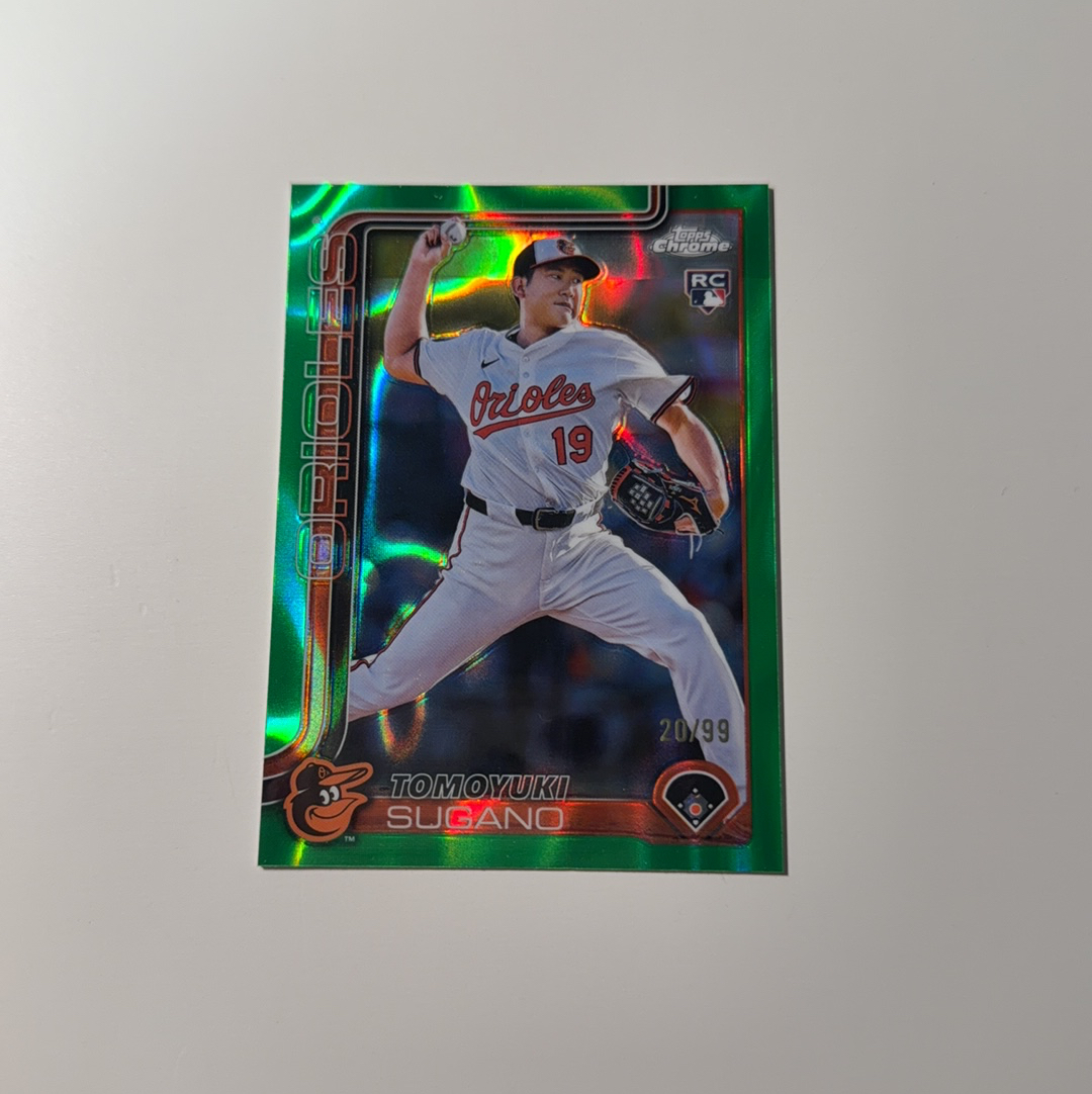 2025 Topps 【锡安代卖】 累计照常 棒球mlb Topps Chrome Tomoyuki Sugano 新秀RC 营野智之 巴尔的摩金莺 99编 绿熔岩折 凑套必备 不保卡品 春总