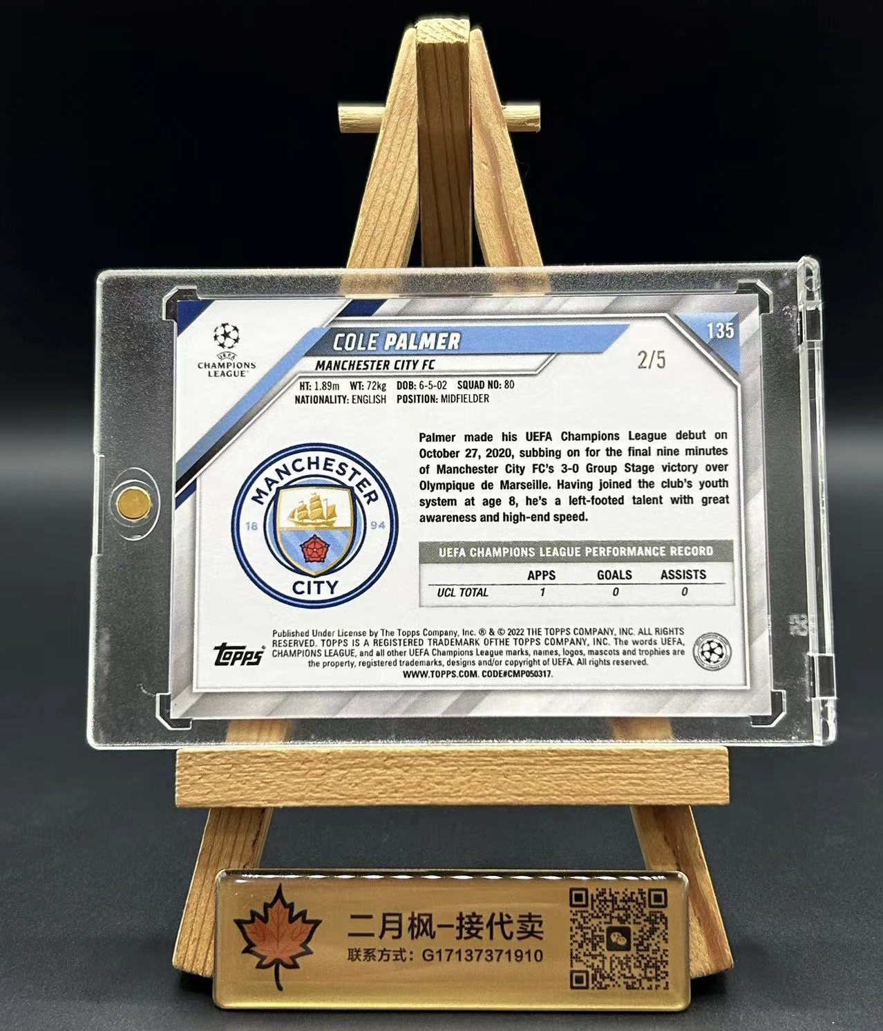 【二月枫-承接代卖】2021-22 Topps Chrome sapphire Cole PaImer RC red /5 科尔 帕尔默 欧冠 蓝宝石 英格兰 切尔西 曼城 新秀 红碎冰折 5编 微瑕