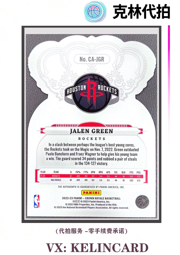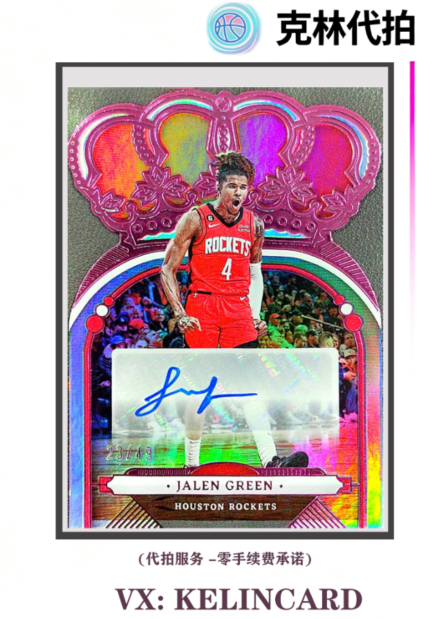 2022-23 Panini Crown Royale Jalen Green 杰伦格林 /49编 签字 皇冠 异形 折射 新秀一阵 火箭 风雪哥 未来可期 专收必备