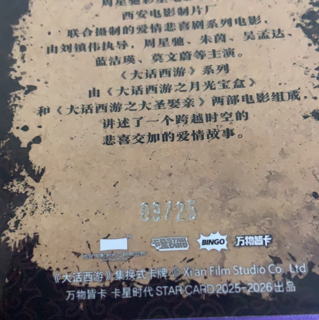 2025 卡星时代 Star Card 大话西游系列30周年收藏卡 一级人物卡 牛香香 09/25编 月光宝盒 大圣娶亲 仙履奇缘 周星驰 王-接上拍