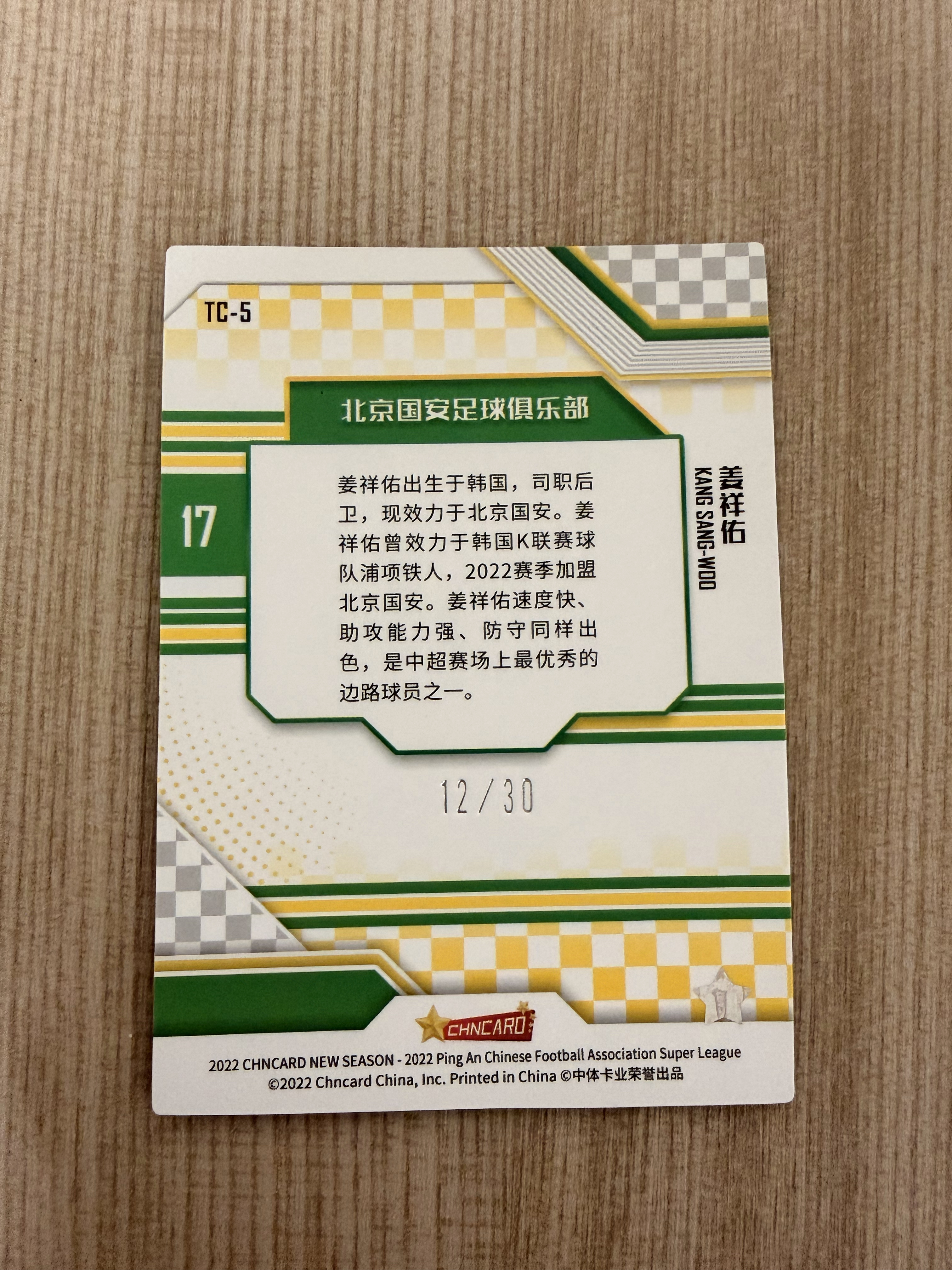 2022 中体卡业 CSL NEW SEASON(新赛季)北京国安 姜祥佑 30编 热力碰撞 3D特卡 韩国 国足 中国体育 卡品如图 实物好看 稀有少见 凑套必备 中超 背景张稀哲
