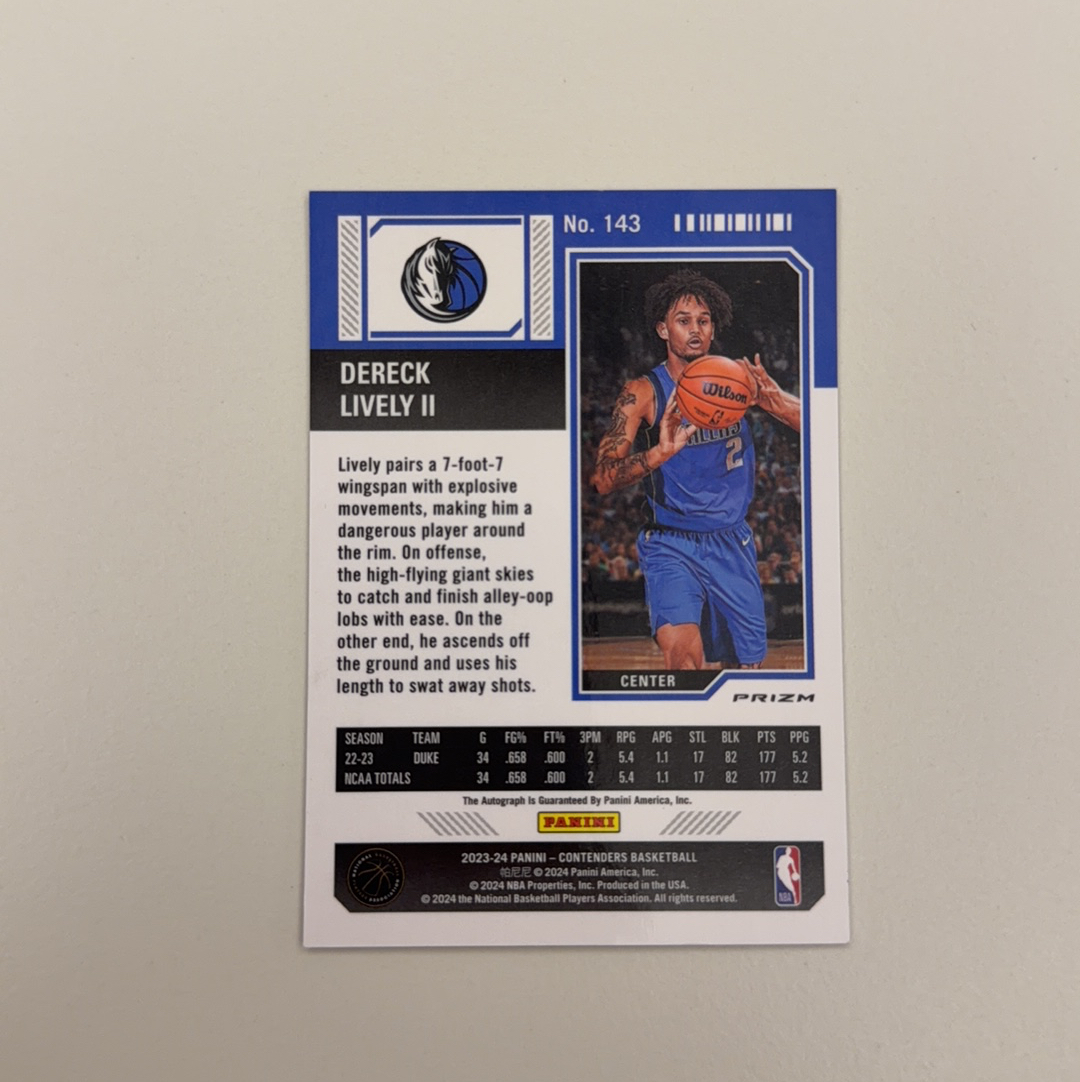 2023-24 Panini Contenders Dereck Lively II RC 来弗力 二世 独行侠 潜力新秀中锋 天赋爆炸 独行侠核心 新秀年球票 卡签 收藏必备