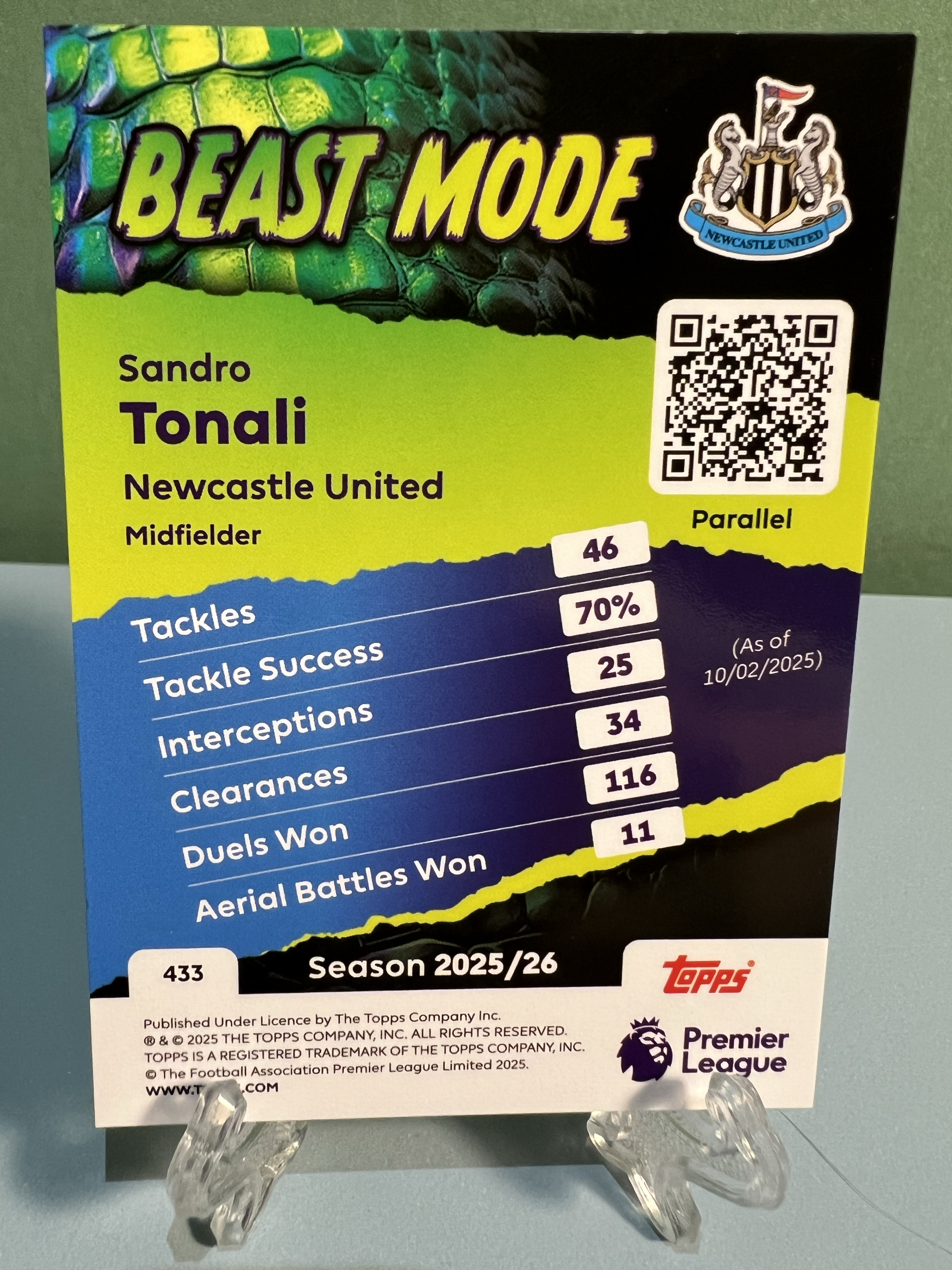 2025-26 Topps 英超Hobby Sandro Tonali 英超Hobby系列 野兽模式特卡 托纳利 10编 纽卡斯尔联队