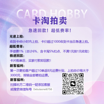 拍下即认可卡品!不退!介意勿拍!拍卖截标后不议价!累计以及无开箱视频无售后。