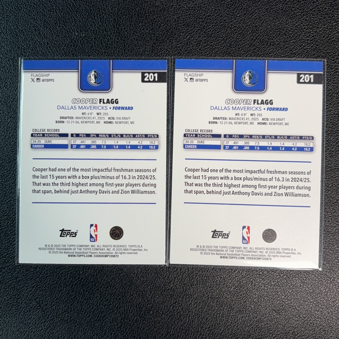 2025 Topps FLAGSHIP COOPER FLAGG RC 独行侠 库珀弗拉格 新秀 状元 base 实卡精美 卡品如图 收藏必入 2张lot SH007 E281117