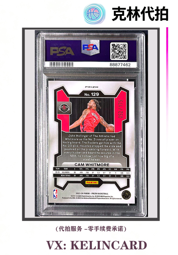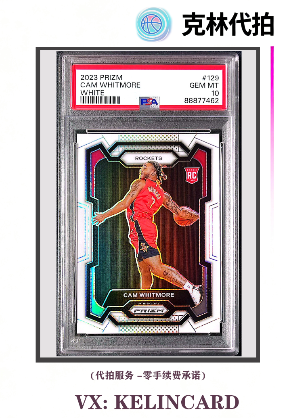 2023-24 Panini Prizm Cam Whitmore RC 卡姆惠特莫尔 惠特摩尔 /175编 PSA10 白折 折射 新秀 火箭 PZ系列 白魔 white