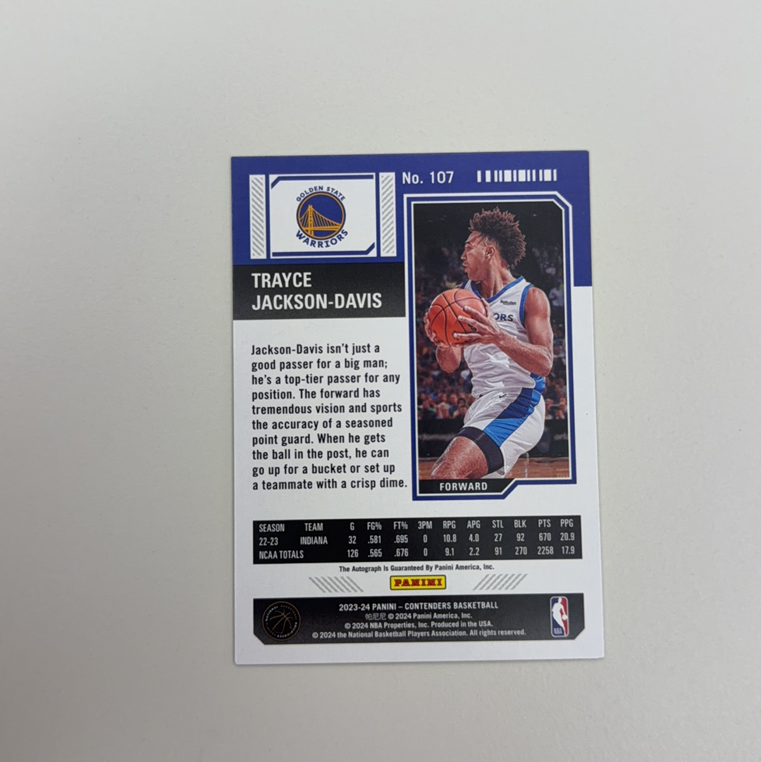 2023-24 Panini Contenders Trayce Jackson Davis RC 土鸡蛋 勇士潜力新秀 新秀年 球票 特卡 卡签 签字字迹如图 凑套收藏 未来可期