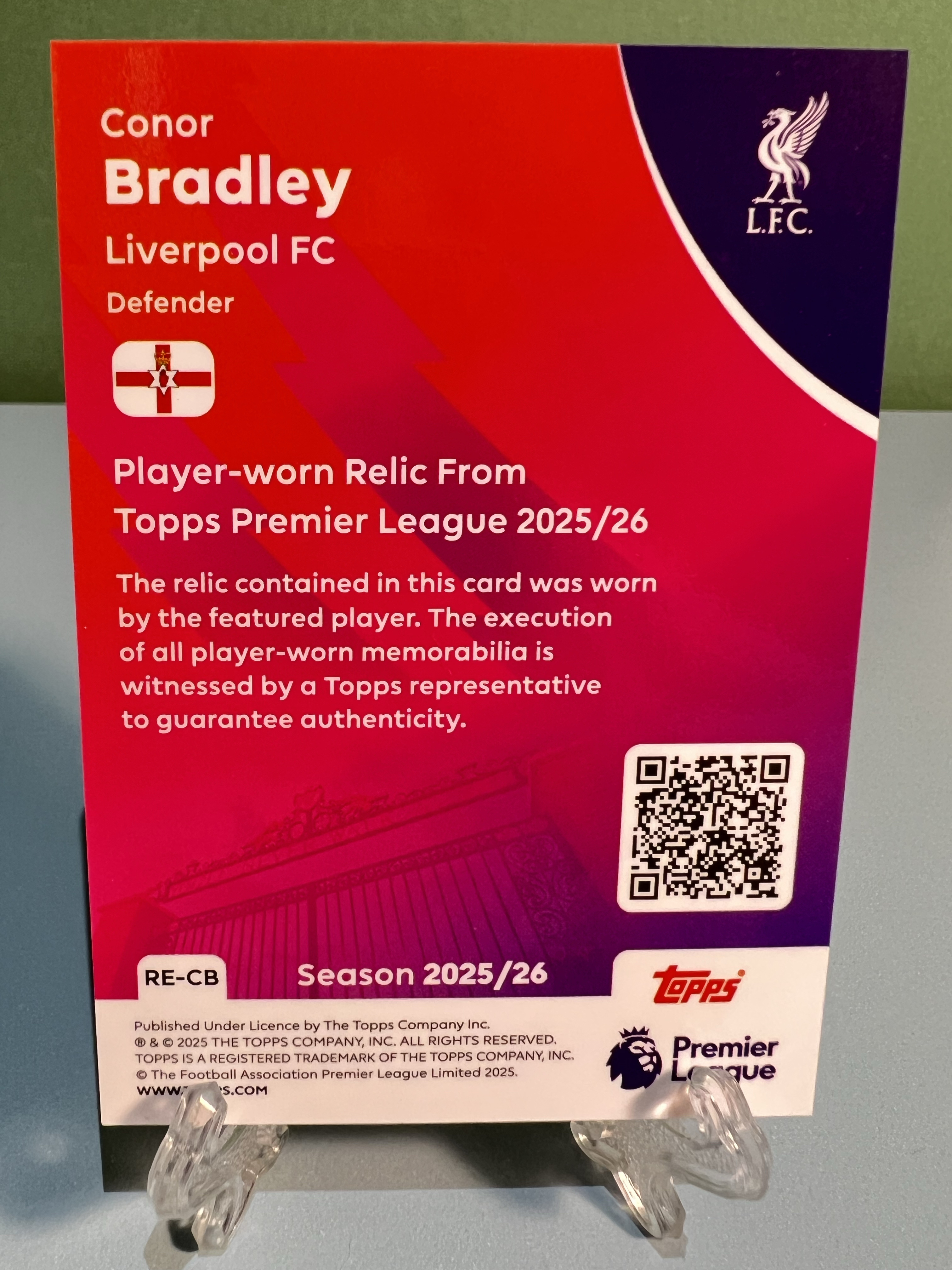 2025-26 Topps 英超Hobby Conor Bradley 英超Hobby系列 物料切割 亲穿 康纳 布拉德利 利物浦