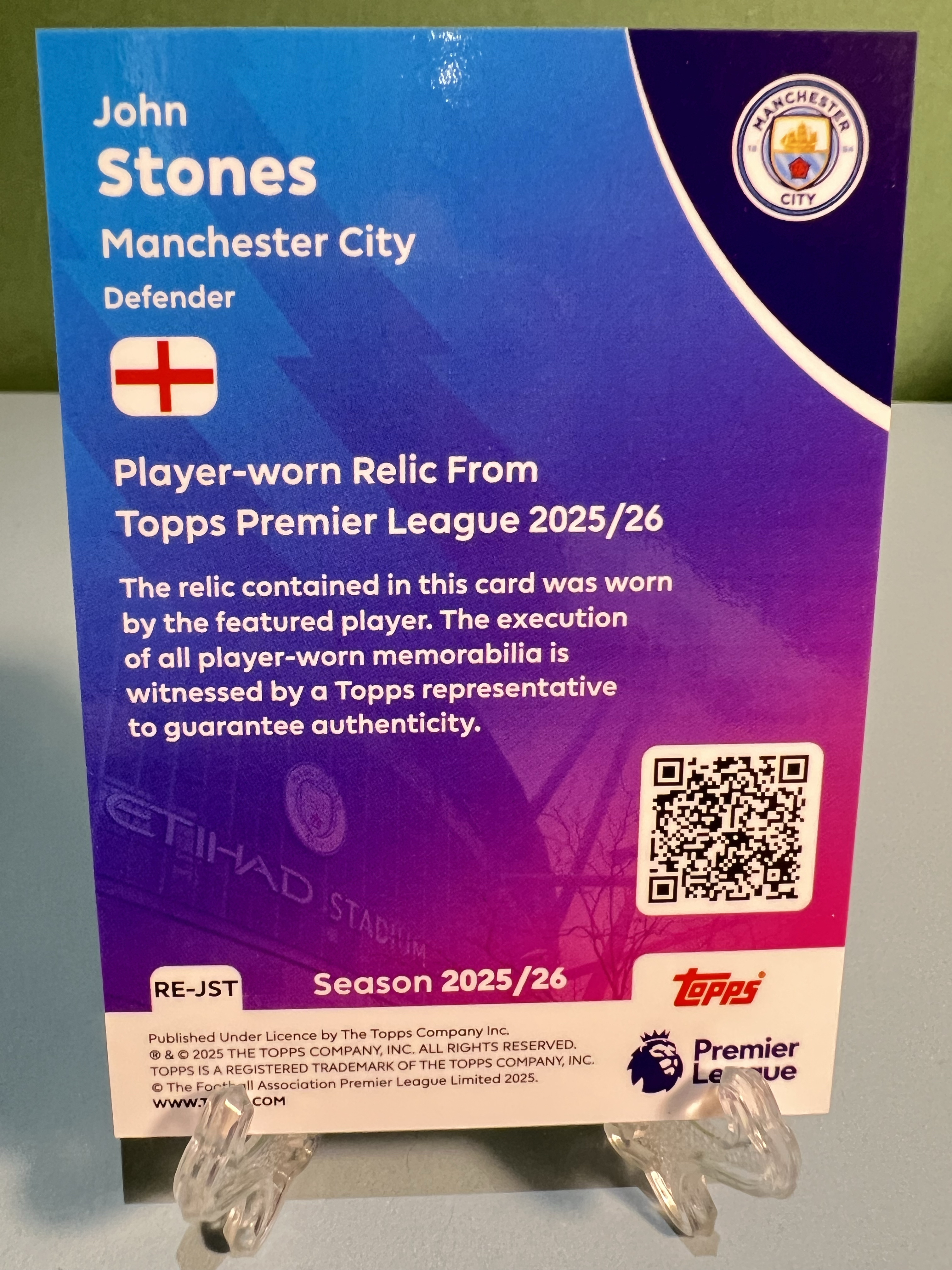 2025-26 Topps 英超Hobby John Stones 英超Hobby系列 物料切割 亲穿 约翰 斯通斯 曼城