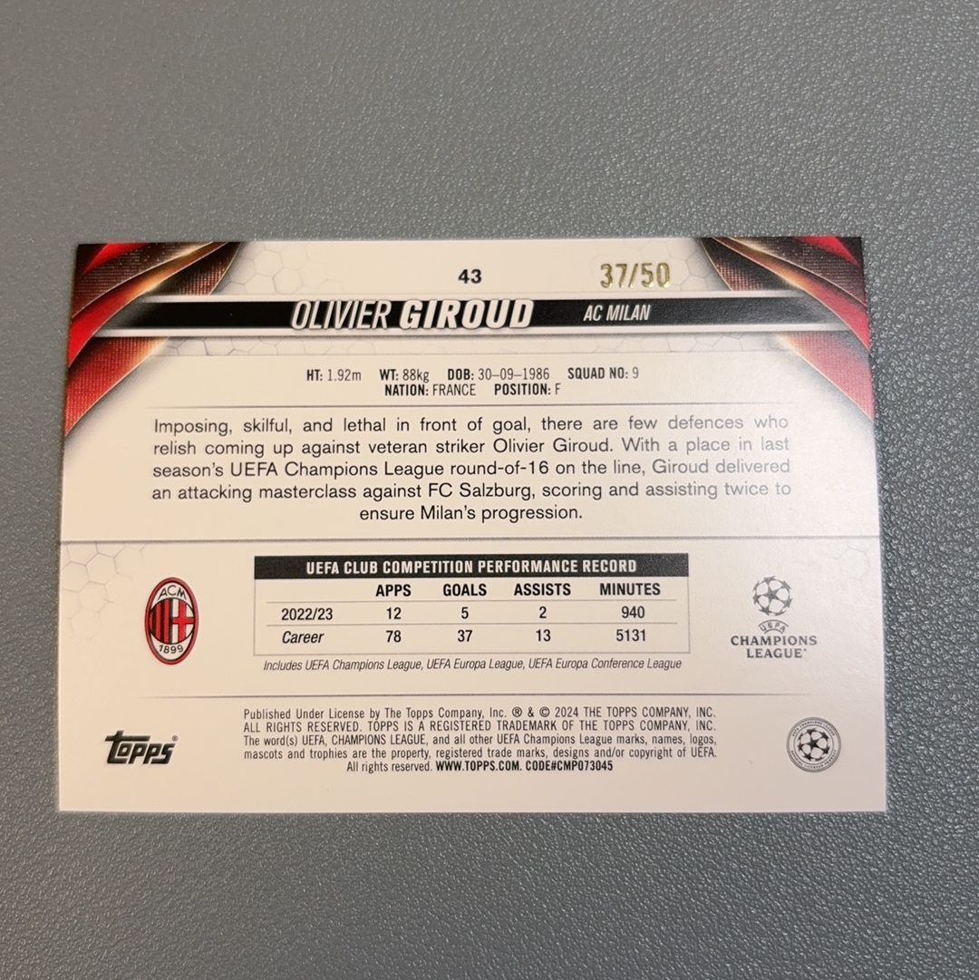 【风速狗】2023-24 topps 龙年碧玉 碧玉折射 金折 AC米兰 OLIVER GIROUD 吉鲁 37/50编 陈哥