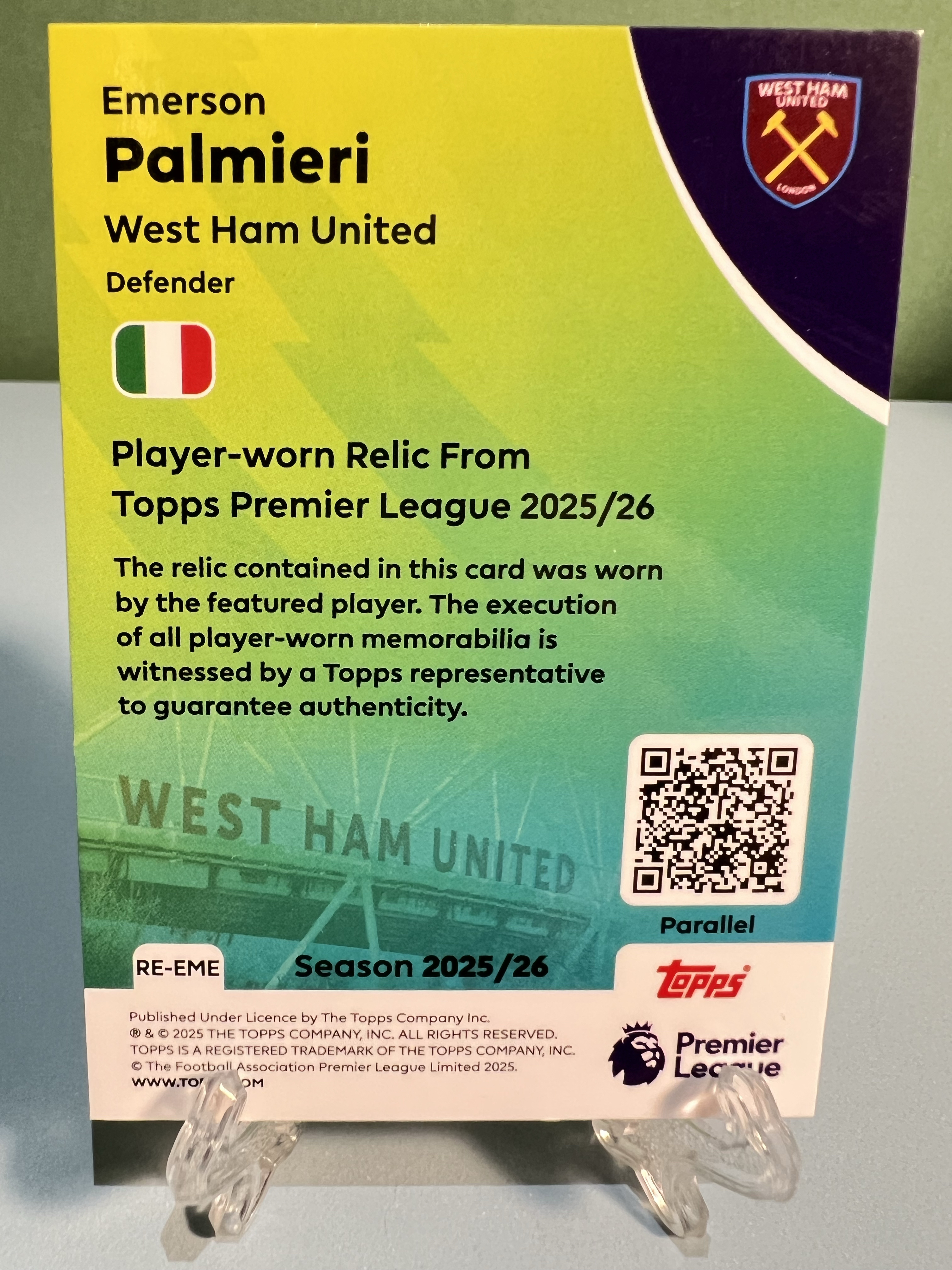 2025-26 Topps 英超Hobby Emerson Palmieri 英超Hobby 物料切割 亲穿 埃默森 帕尔米耶里 199编 西汉姆联