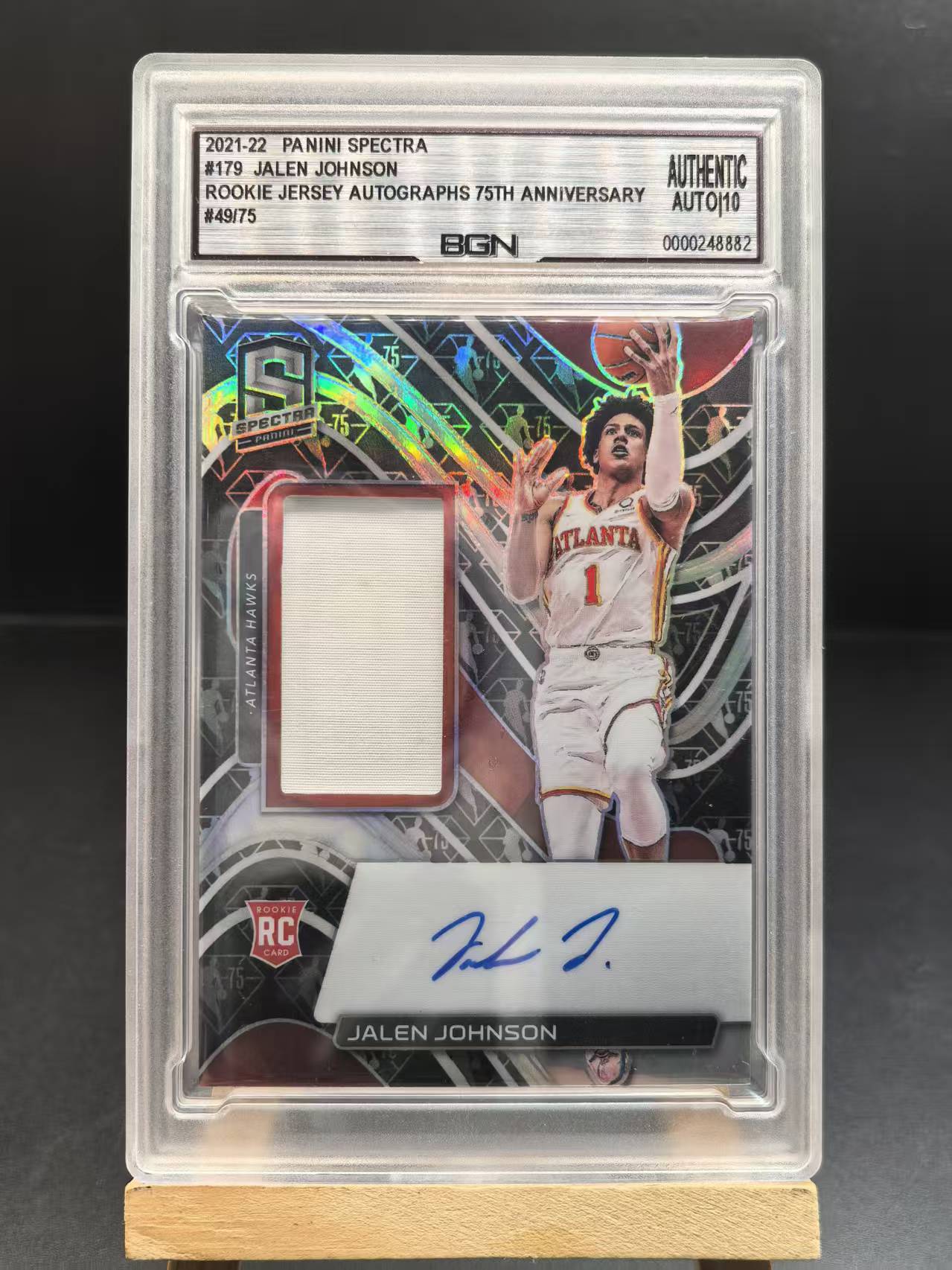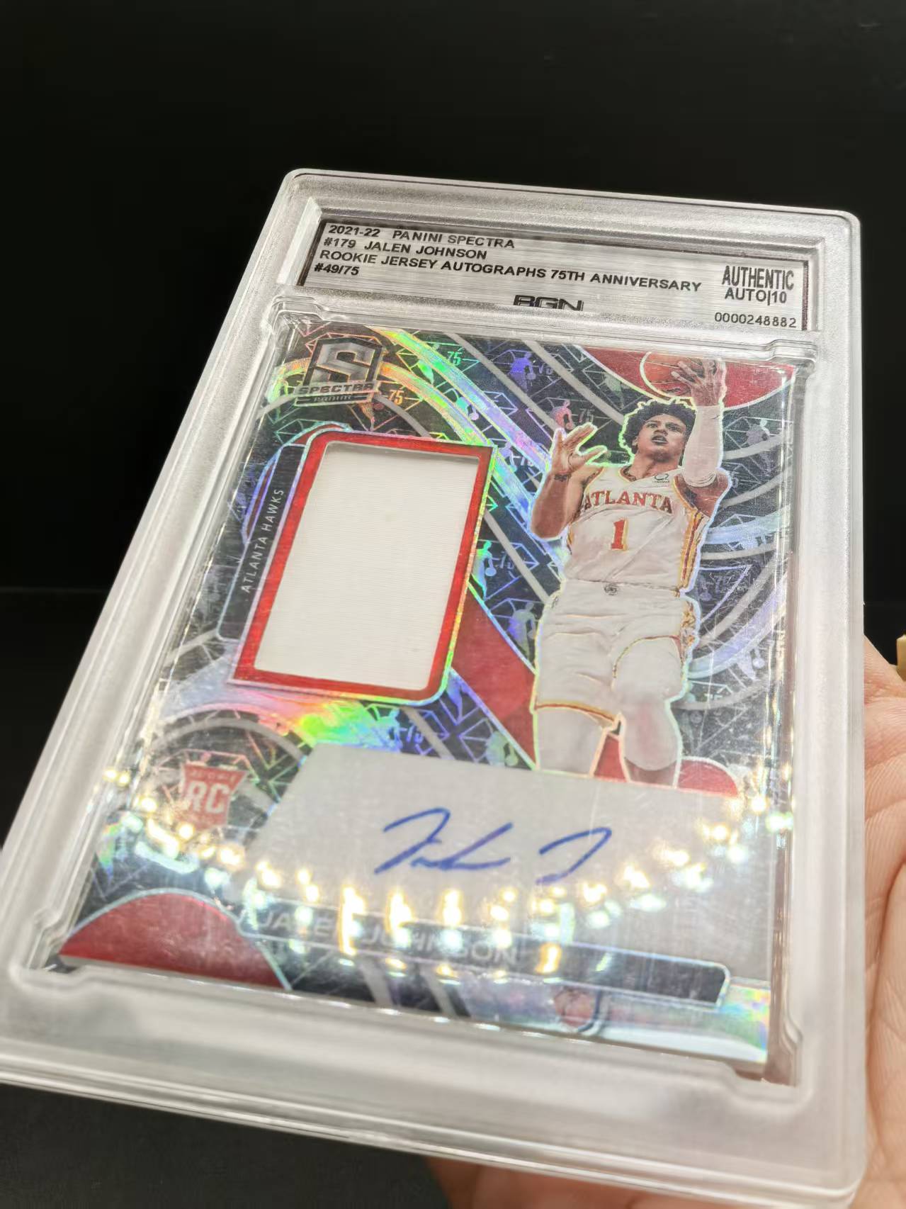 2021-22 Panini Spectra Jalen Johnson RC 舟 光谱 老鹰新秀 杰伦 约翰逊 RJA 卡签 75编 签字 球衣 潜力十足 BGN评级 微白边角111711(如棋