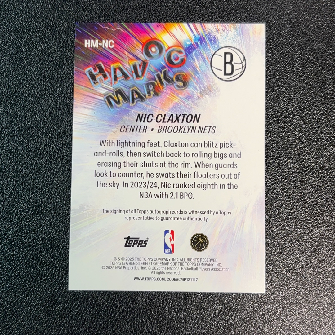2025-26 Topps High Topps Nic Claxton 尼克 克拉克斯顿 Havoc Marks 特卡 折射 银折 签字 布鲁克林篮网 背号签 SH007 E421117