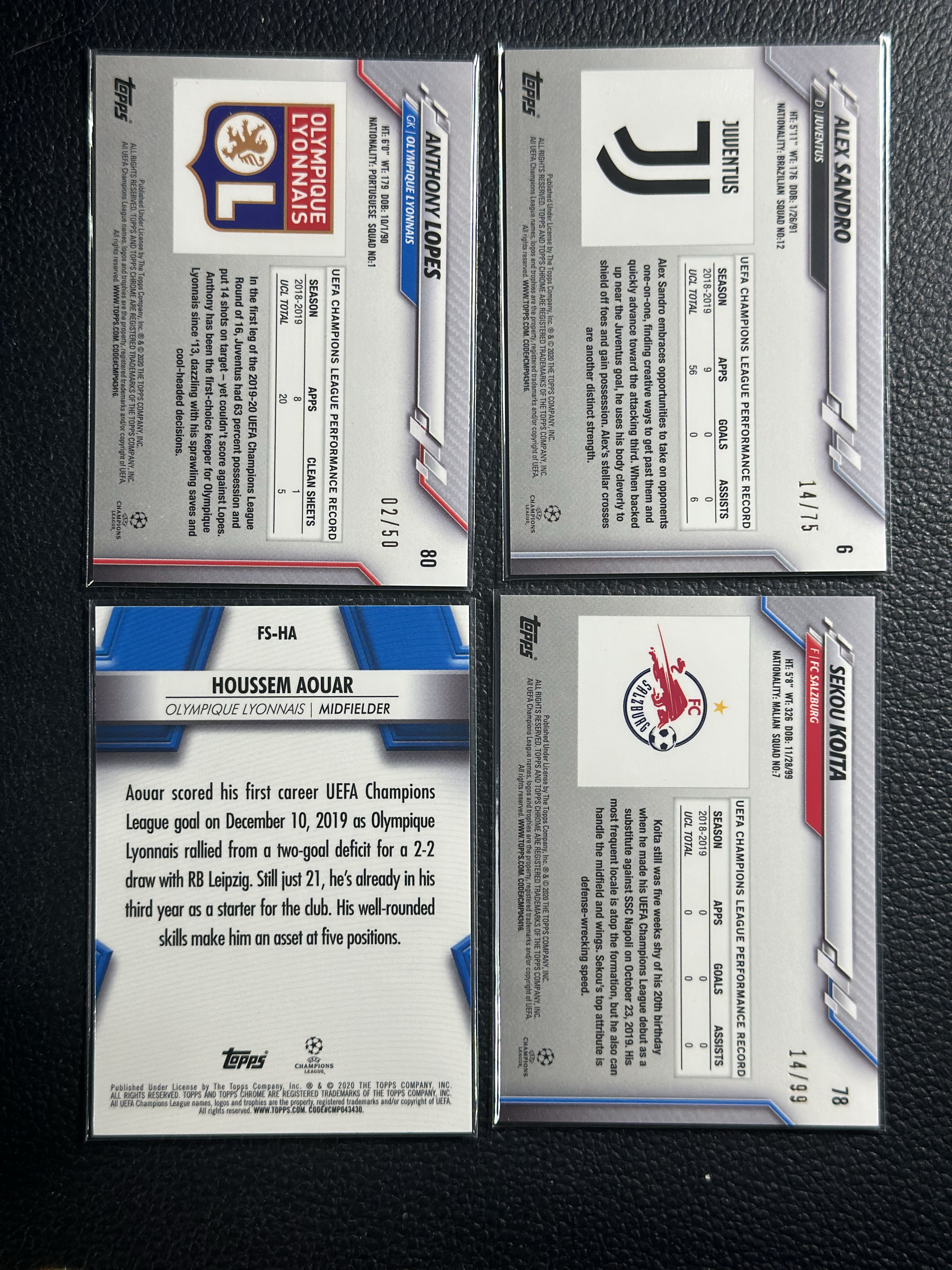 2019-20 Topps sapphire chrome Sekou Koita RC Kacey拍卖元年欧冠蓝宝石 尤文图斯 里昂 洛佩斯 桑德罗 奥亚尔 科伊塔新秀 4张带编打包必备大魔王