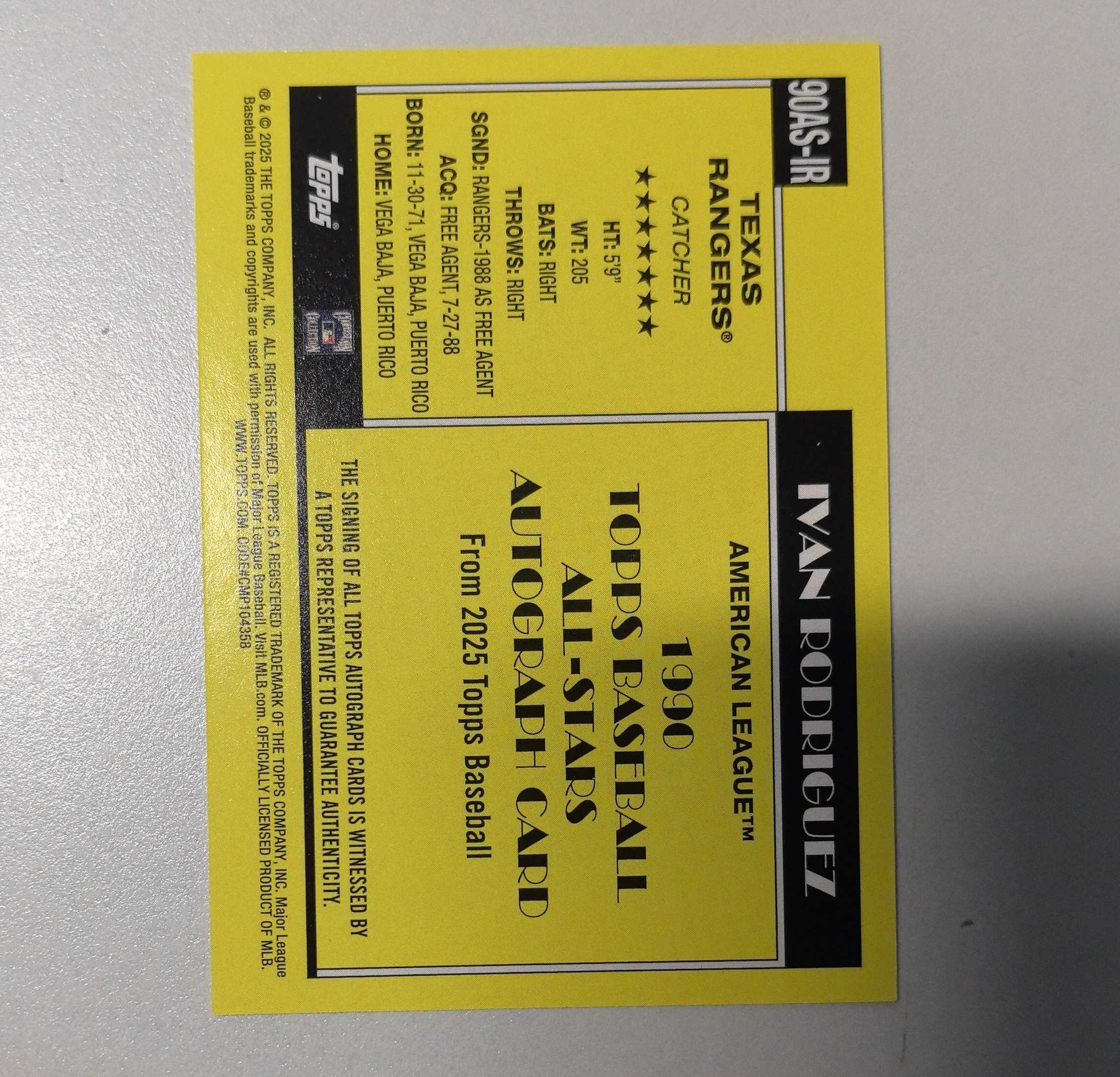 2025 Topps 【锡安代卖】 累计照常 棒球mlb series update 复古全明星特卡签字卡签 德州游骑兵传奇捕手 Ivan rodriguez 卡品如图 三角肉