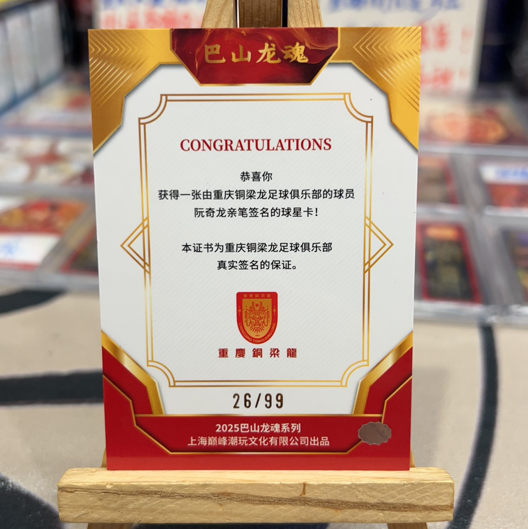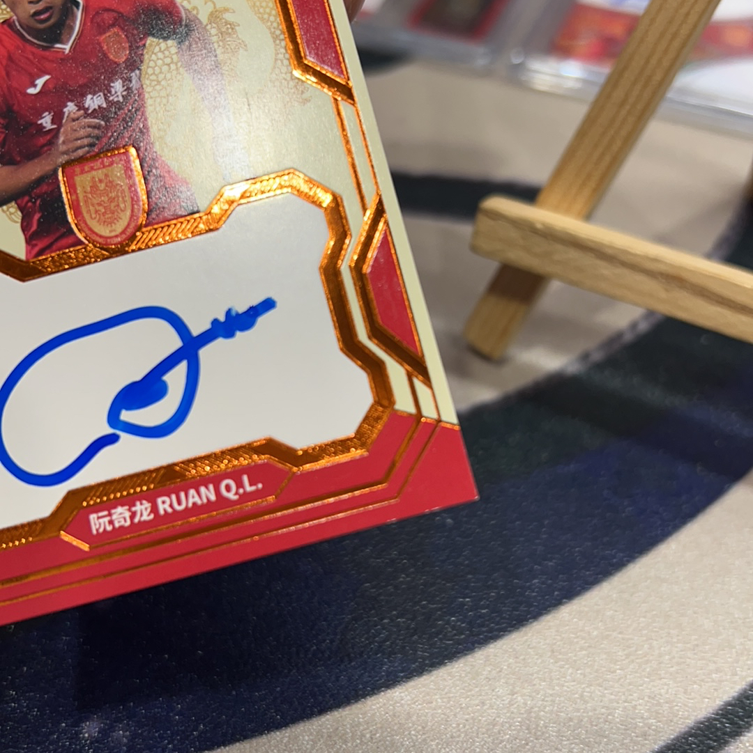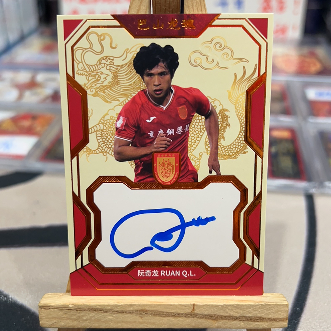 2025 巅峰潮玩 巴山龙魂 Ruan Qilong 【耳朵卡社】巅峰潮玩 2025 重庆铜梁龙队盒 巴山龙魂 签字卡 卡签 低编 26/99编 阮奇龙 国安 瑕疵见图 sollent
