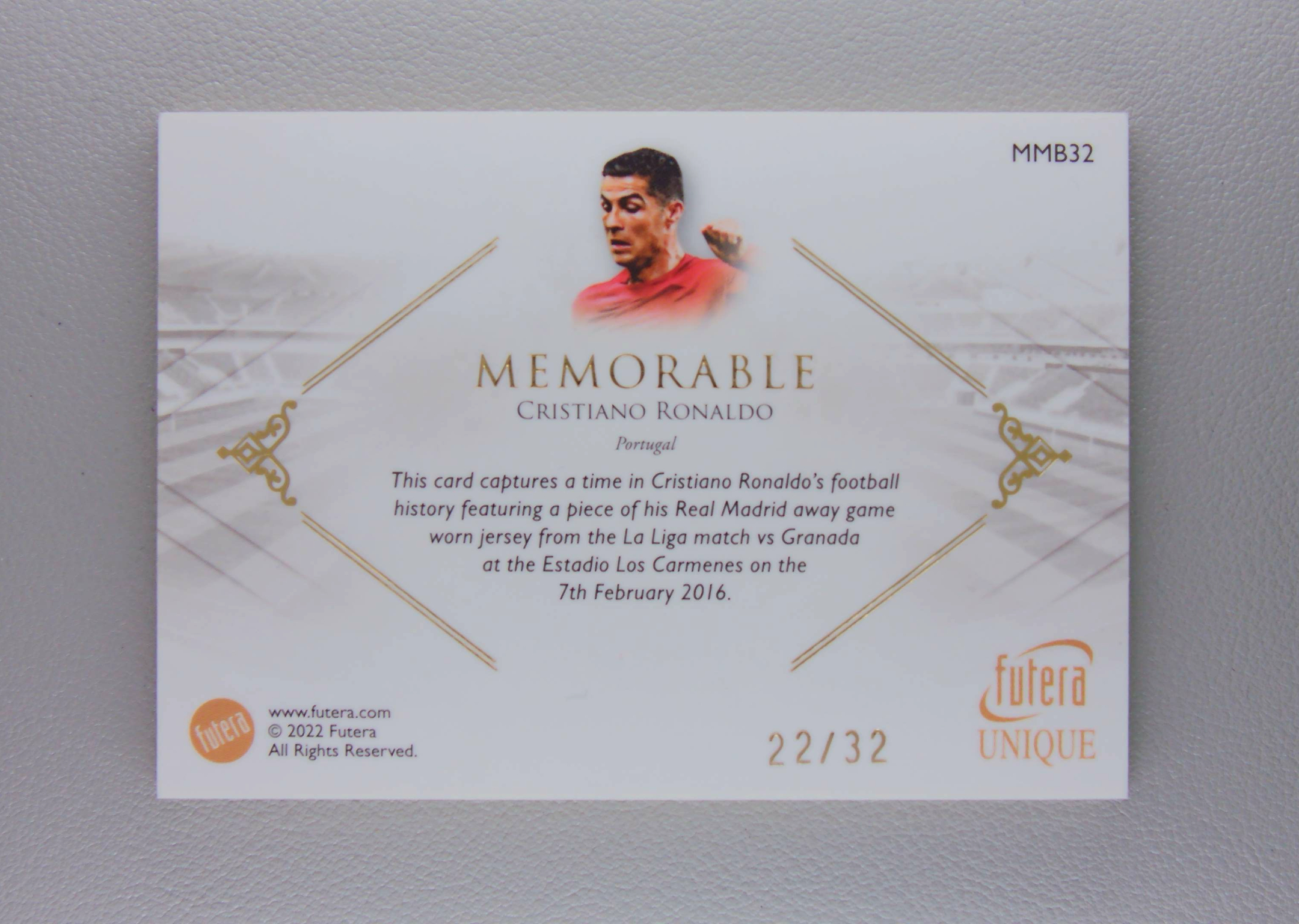 2022 Futera Futera Unique Cristiano Ronaldo C罗 四窗 葡萄牙 皇马 皇家马德里 落场 物料 球衣 32编 曼联 尤文 福特拉 战神无双(兰州拉面在逃)