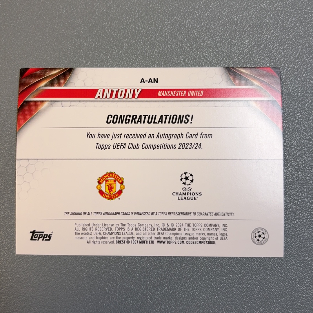 【风速狗】2023-24 topps 龙年碧玉 碧玉折射 曼联 ANTONY 安东尼 签字 签名 完美签 陈哥