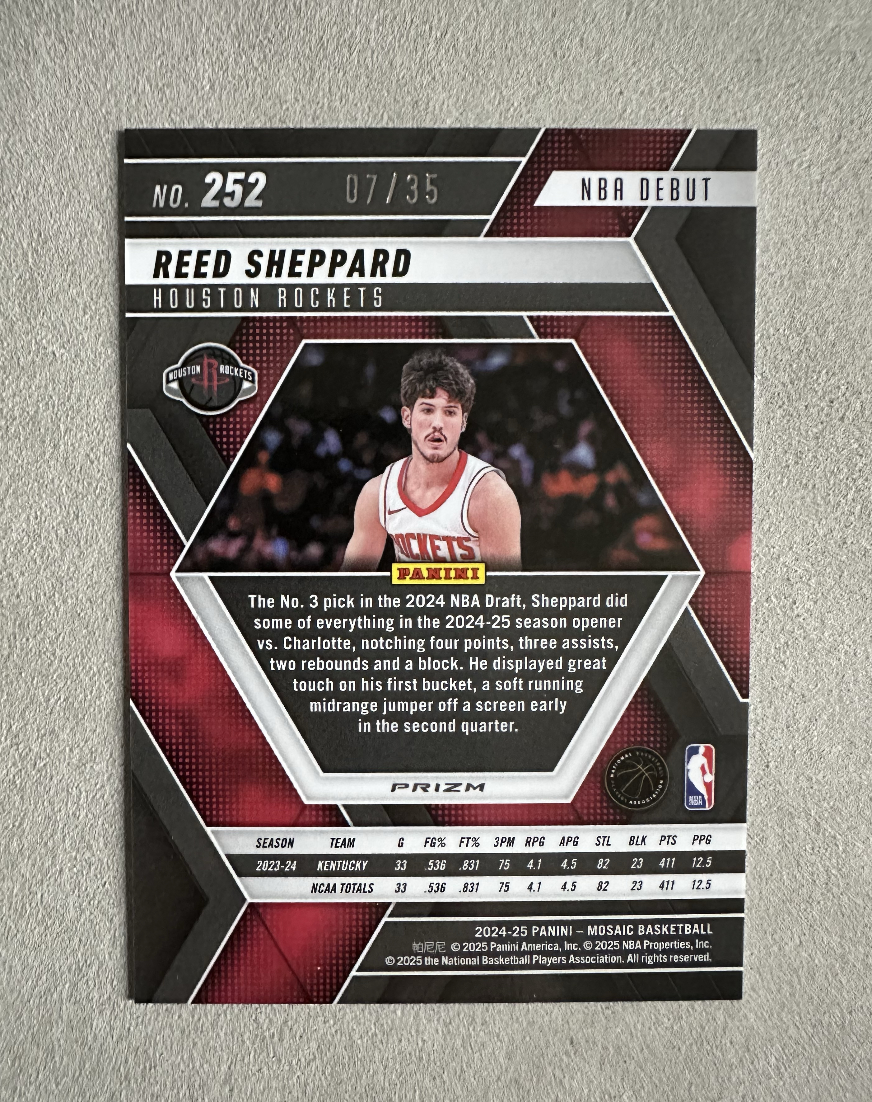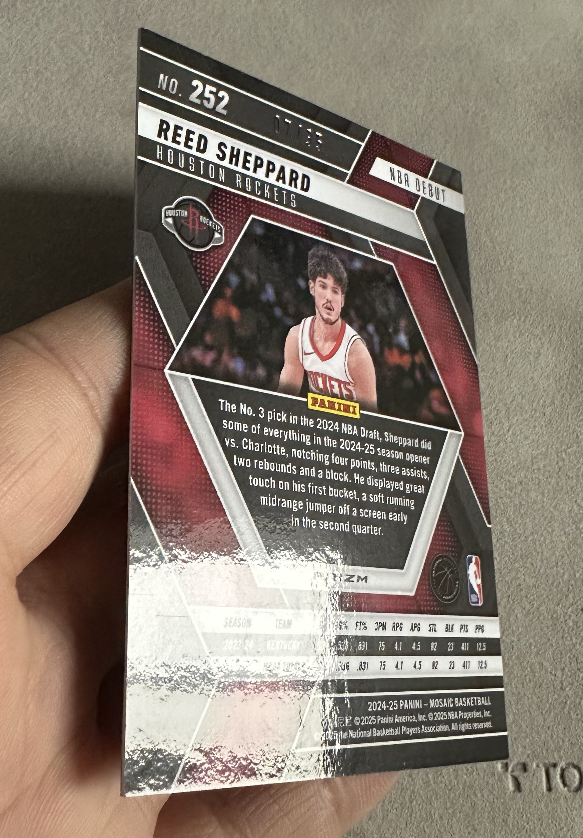 2025 Panini Mosaic Reed Sheppard RC 火箭队 新秀 里德 谢泼德 马赛克 新秀35编 蓝圈圈折射 瑕疵如图 卡量稀少 凑套必备(浩哥10)