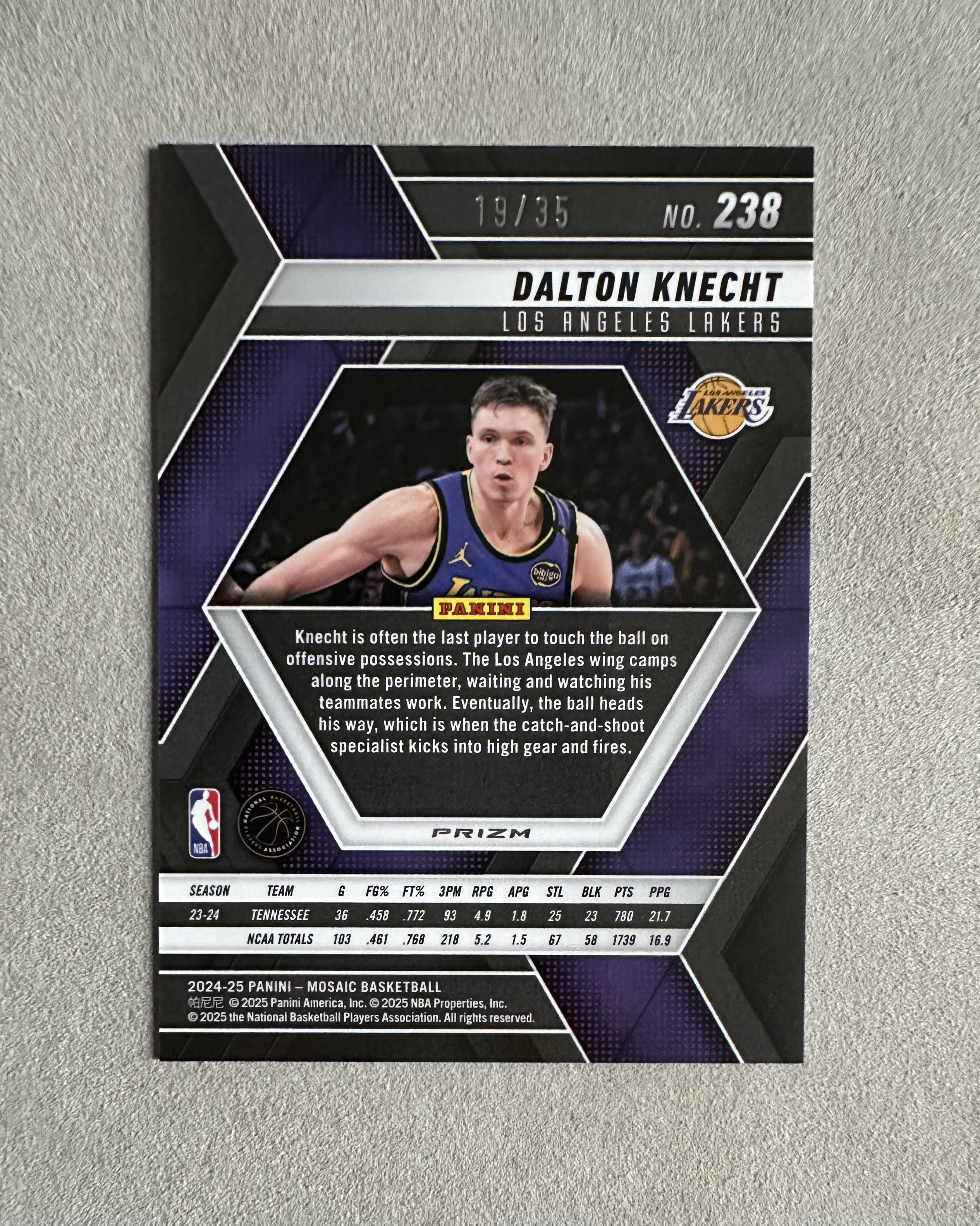 2025 Panini Mosaic Dalton Knecht RC 湖人队新秀 克内克特 马赛克 新秀35编 蓝圈圈折射 瑕疵如图 卡量稀少 凑套必备(浩哥10)
