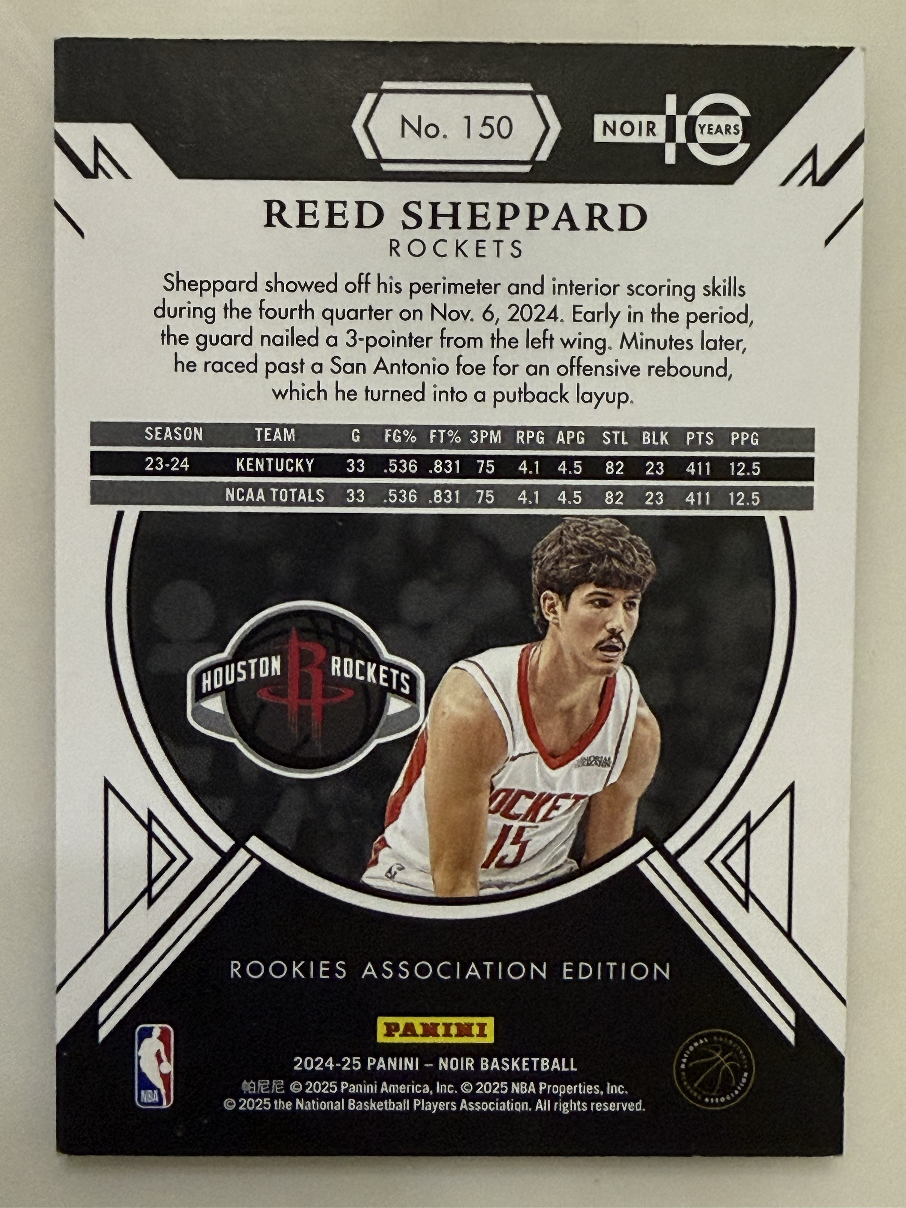 2024-25 Panini Noir Reed Sheppard RC 新秀 99编 里德 谢泼德 火箭 诺尔 base 卡品如图
