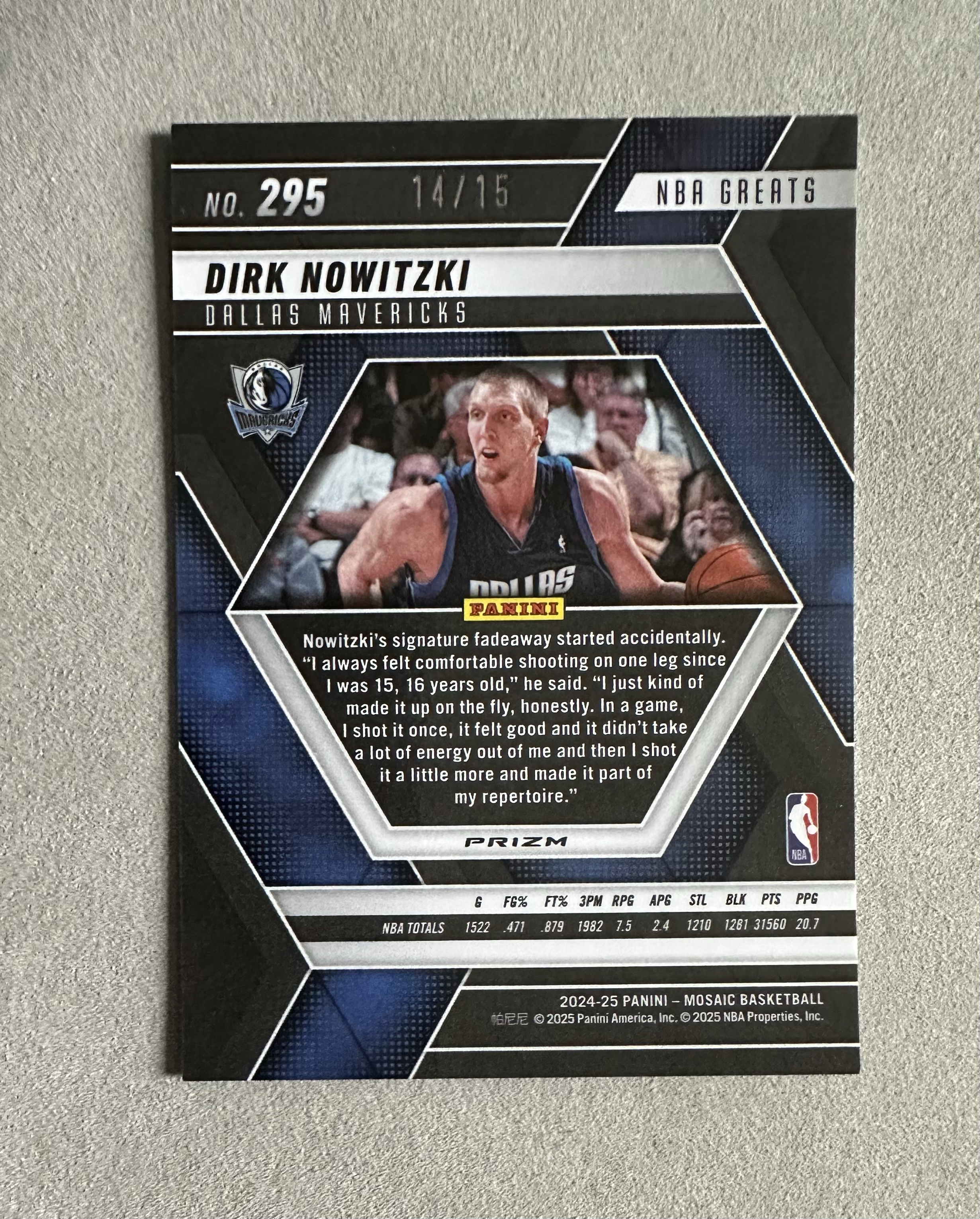 2025 Panini Mosaic Dirk Nowitzki 独行侠队 司机 诺维斯基 马赛克折射 15编 绿圈圈 瑕疵如图 卡量稀少 凑套必备(浩哥10)